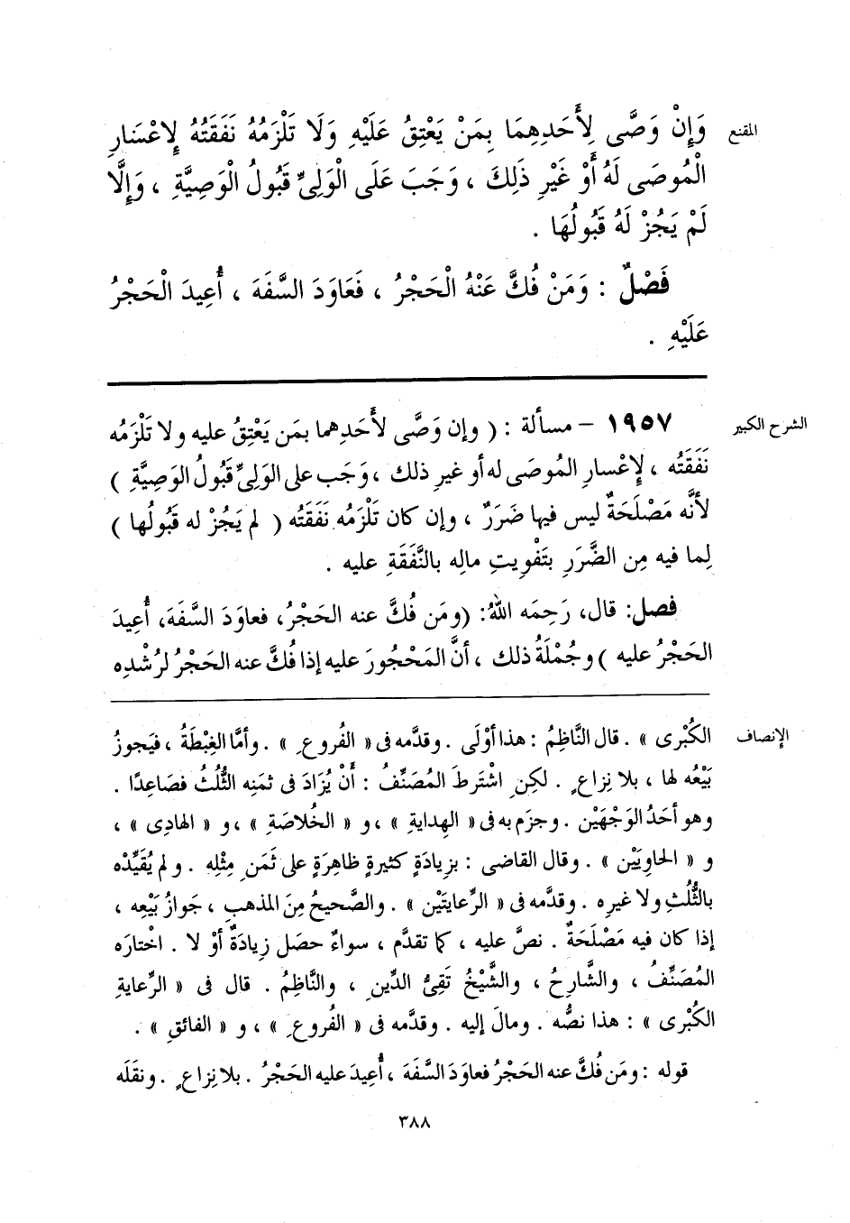 الكُبْرى». قال النَّاظِمُ: هذا أوْلَى. وقدَّمه في «الفُروعِ». وأمَّا الغِبْطَةُ، فيَجوزُ بَيعُه لها، بلا نِزاعٍ. لكِنِ اشْتَرطَ المُصَنِّفُ: أنْ يُزَادَ في ثمَنِه الثُّلُثُ فصَاعِدًا. وهو أحَدُ الوَجْهَين. وجزَم به في «الهِدايةِ»، و «الخُلاصَةِ»، و «الهادِي»، و «الحاويَيْن». وقال القاضي: بزِيادَةٍ كثيرةٍ ظاهِرَةٍ على ثَمَنِ مِثْلِه. ولم يُقَيِّدْه بالثُّلُثِ ولا غيرِه. وقدَّمه في «الرِّعايتَين». والصَّحيحُ مِنَ المذهب، جَوازُ بَيعِه، إذا كان فيه مَصْلَحَةٌ. نصَّ عليه، كما تقدَّم، سواء حصَل زِيادَةٌ أوْ لا. اخْتارَه المُصَنِّفُ، والشارِحُ، والشَّيخُ تَقِيُّ الدِّينِ، والنَّاظِمُ. قال في «الرِّعايةِ الكُبْرى»: هذا نصُّه. ومال إليه. وقدَّمه في «الفُروعِ»، و «الفائقِ».