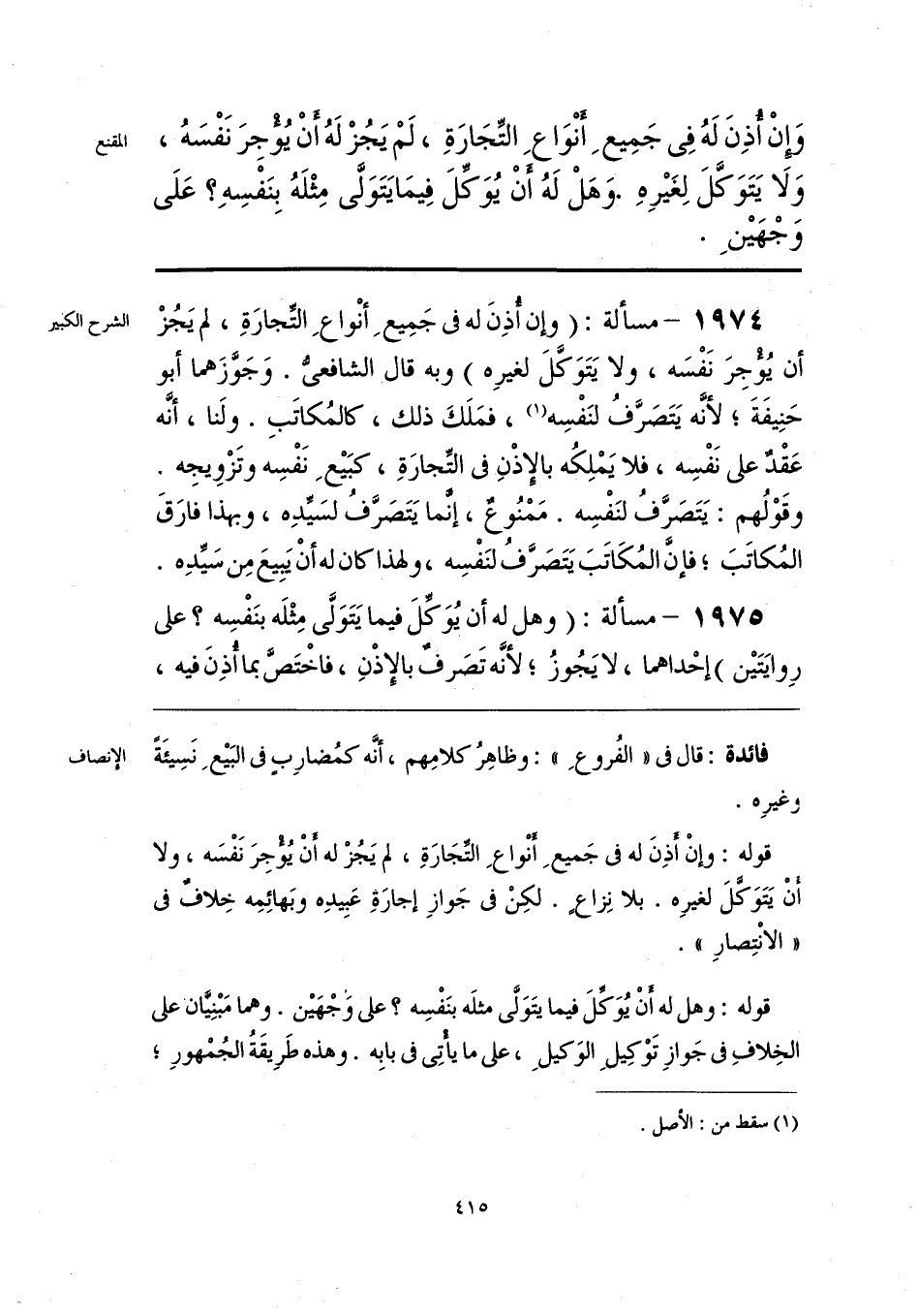 قوله: وإنْ أَذِنَ له في جَميعِ أنْواعِ التجَارَةِ، لم يَجُزْ له أنْ يُؤجِرَ نَفْسَه، ولا أنْ يَتَوَكَّلَ لغيرِه. بلا نِزاع. لكِنْ في جَوازِ إجارَةِ عَبِيدِه وبَهائِمِه خِلافٌ في «الانْتِصارِ».