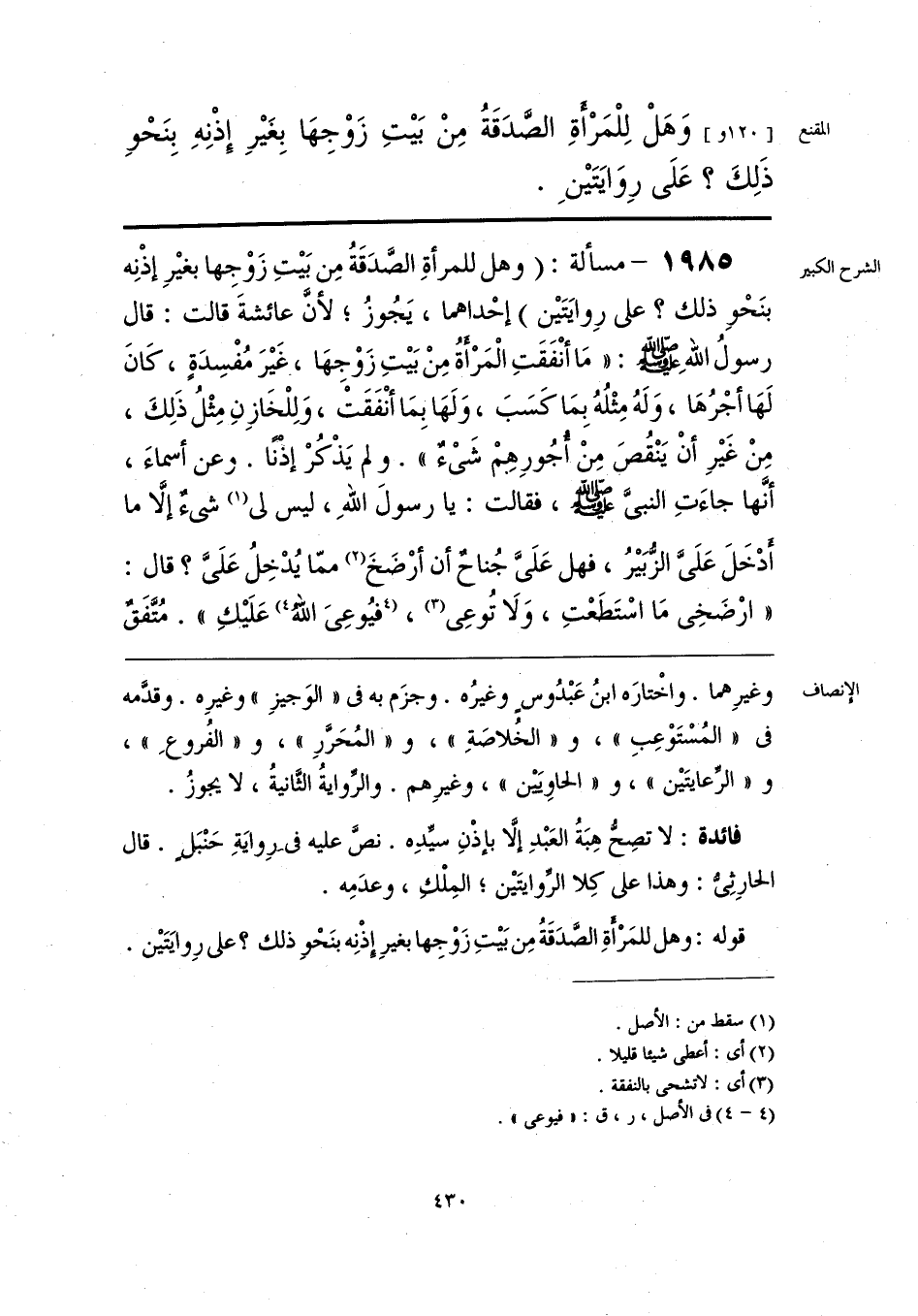 وَهَلْ لِلْمَرأَةِ الصَّدَقَةُ مِنْ بَيتِ زَوْجِهَا بِغَيرِ إِذْنِهِ بِنَحْو ذَلِكَ؟ عَلَى رِوَايَتَينَ.