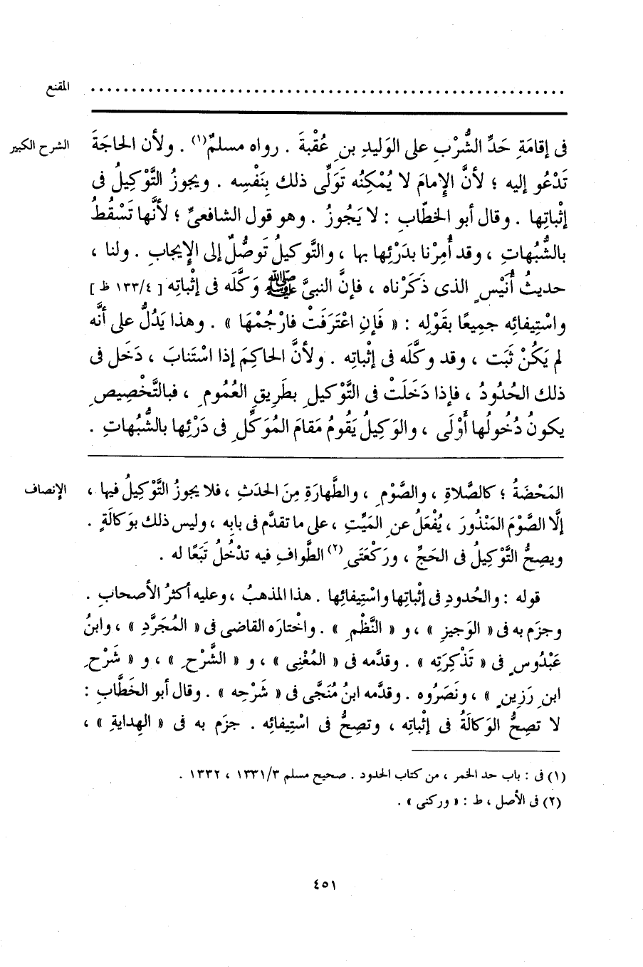 قوله: والحُدودِ في إثْباتِها واسْتِيفائِها. هذا المذهبُ، وعليه أكثرُ الأصحاب. وجزَم به في «الوَجيزِ»، و «النَّظْمِ». واخْتارَه القاضي في «المُجَرَّدِ»، وابنُ عَبْدُوسٍ في «تَذْكِرَتِه». وقدَّمه في «المُغْنِي»، و «الشَّرْحِ»، و «شَرْحِ ابنِ رَزِين»، ونَصَرُوه. وقدَّمه ابنُ مُنَجَّى في «شَرْحِه». وقال أبو الخَطَّابِ: لا تصِحُّ الوَكالةُ في إثْباتِه، وتصِحُّ في اسْتِيفائِه. جزَم به في «الهِدايةِ»،