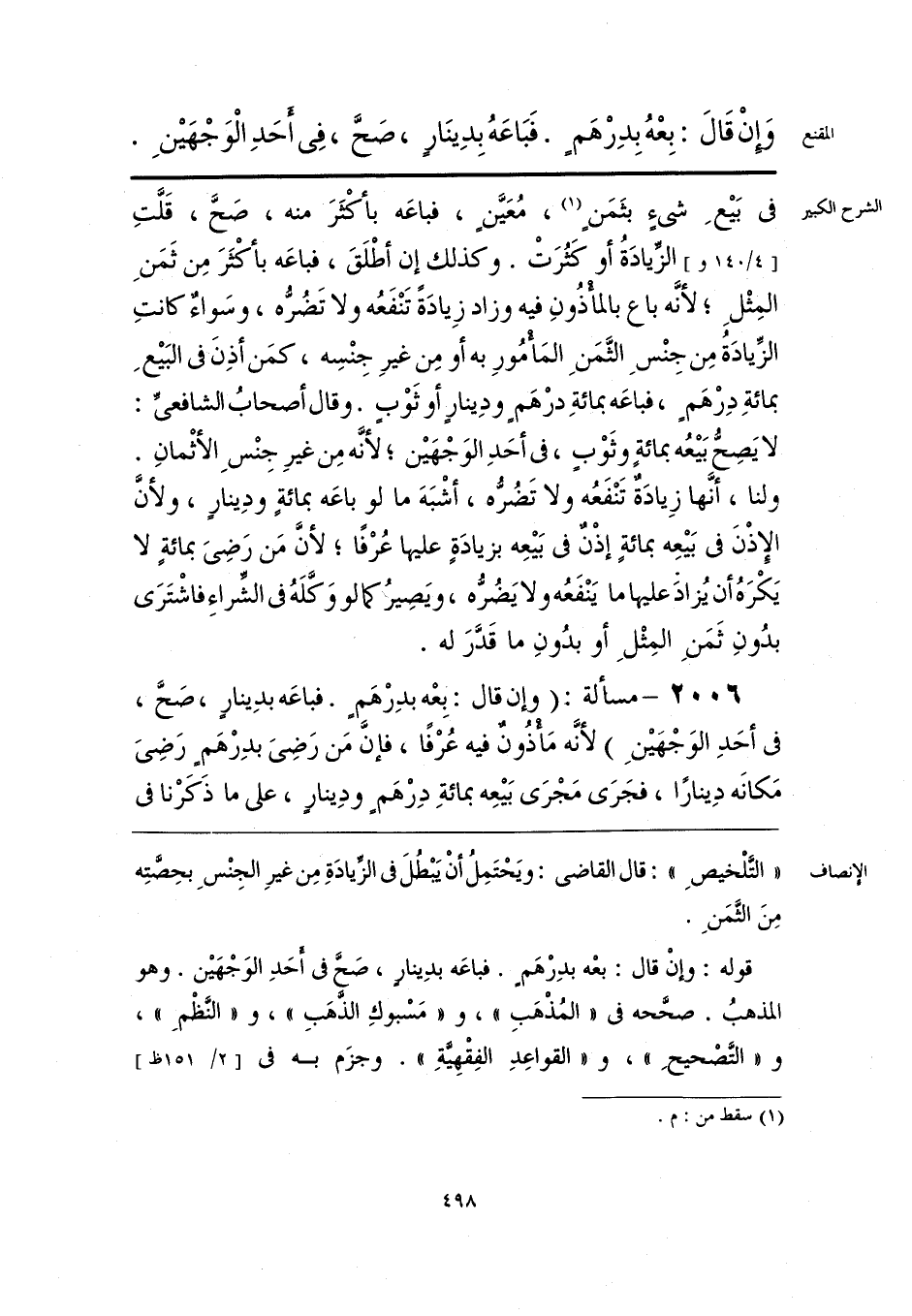 «التَّلْخيصِ»: قال القاضي: ويَحْتَمِلُ أنْ يَبْطُلَ في الزيادَةِ مِن غيرِ الجِنْسِ بحِصَّتِه مِنَ الثَّمَنَ.