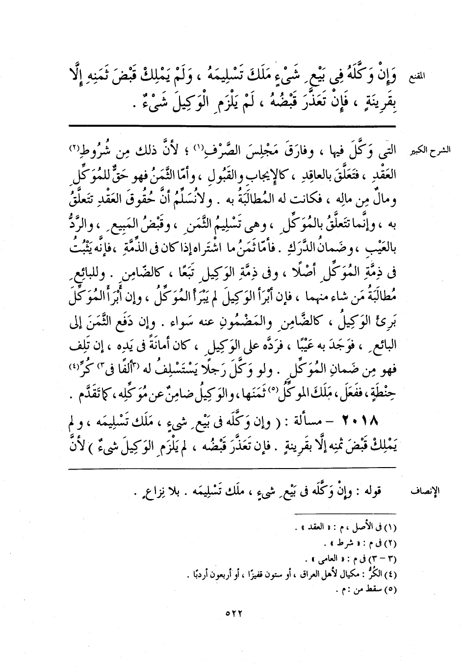 قوله: وإنْ وَكَّلَه في بَيعِ شيءٍ، ملَك تَسْلِيمَه. بلا نِزاعٍ.