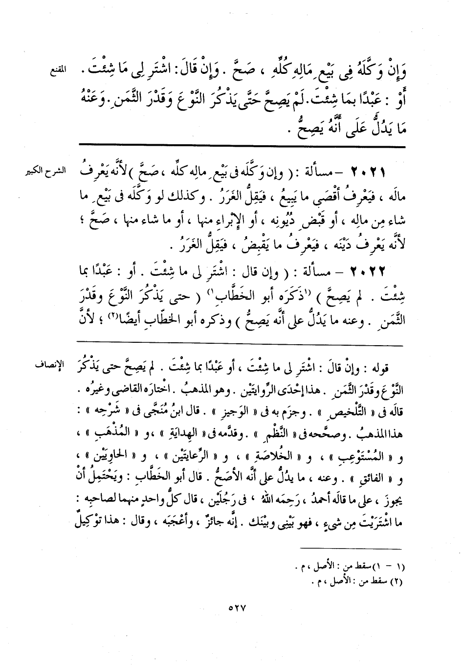قوله: وإنْ قال: اشْتَرِ لي ما شِئْتَ، أو عَبْدًا بما شِئْتَ. لم يَصِحَّ حتى يَذْكُرَ النَّوْعَ وقَدْرَ الثَّمَنِ. هذا إحْدَى الرِّوايتَين. وهو المذهبُ. اخْتارَه القاضي وغيرُه. قاله في «التَّلْخيصِ». وجزَم به في «الوَجيزِ». قال ابنُ مُنَجَّى في «شَرْحِه»: هذا المذهبُ. وصحَّحه في «النَّظْمِ». وقدَّمه في «الهِدايَةِ»، و «المُذْهَبِ»، و «المُسْتَوْعِبِ»، و «الخُلاصَةِ»، و «الرِّعايتَين»، و «الحاويَيْن»، و «الفائقِ». وعنه، ما يدُلُّ على أنَّه الأصَحُّ. قال أبو الخَطَّابِ: ويَحْتَمِلُ أنْ يجوزَ، على ما قاله أحمدُ، رَحِمَه اللهُ، في رَجُلَين، قال كلُّ واحدٍ منهما لصاحبِه: ما اشْتَرَيتَ مِن شيءٍ، فهو بَينِي وبينَك. إنَّه جائزٌ، وأعْجَبَه، وقال: هذا توْكِيلٌ