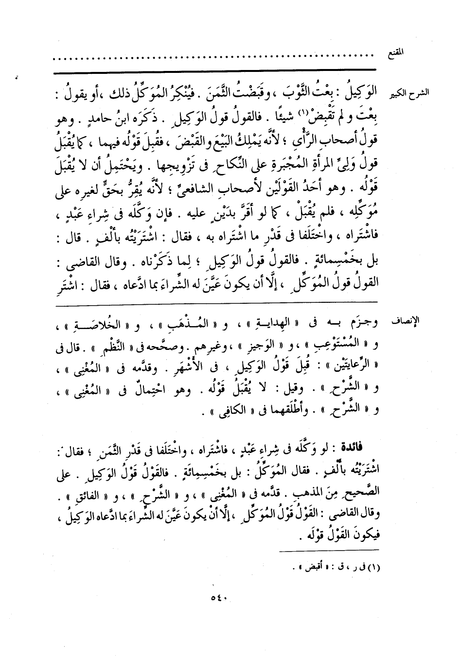وجزَم به في «الهِدايةِ»، و «المُذْهَبِ»، و «الخُلاصَةِ»، و «المُسْتَوْعِبِ»، و «الوَجيزِ»، وغيرِهم. وصحَّحه في «النَّظْمِ». قال في «الرِّعايتَين»: قُبِلَ قَوْلُ الوَكِيلِ، في الأشْهَرِ. وقدَّمه في «المُغْنِي»، و «الشَّرْحِ». وقيل: لا يُقْبَلُ قَوْلُه. وهو احْتِمال في «المُغْنِي»، و «الشَّرْحِ». وأطْلَقهما في «الكافِي».