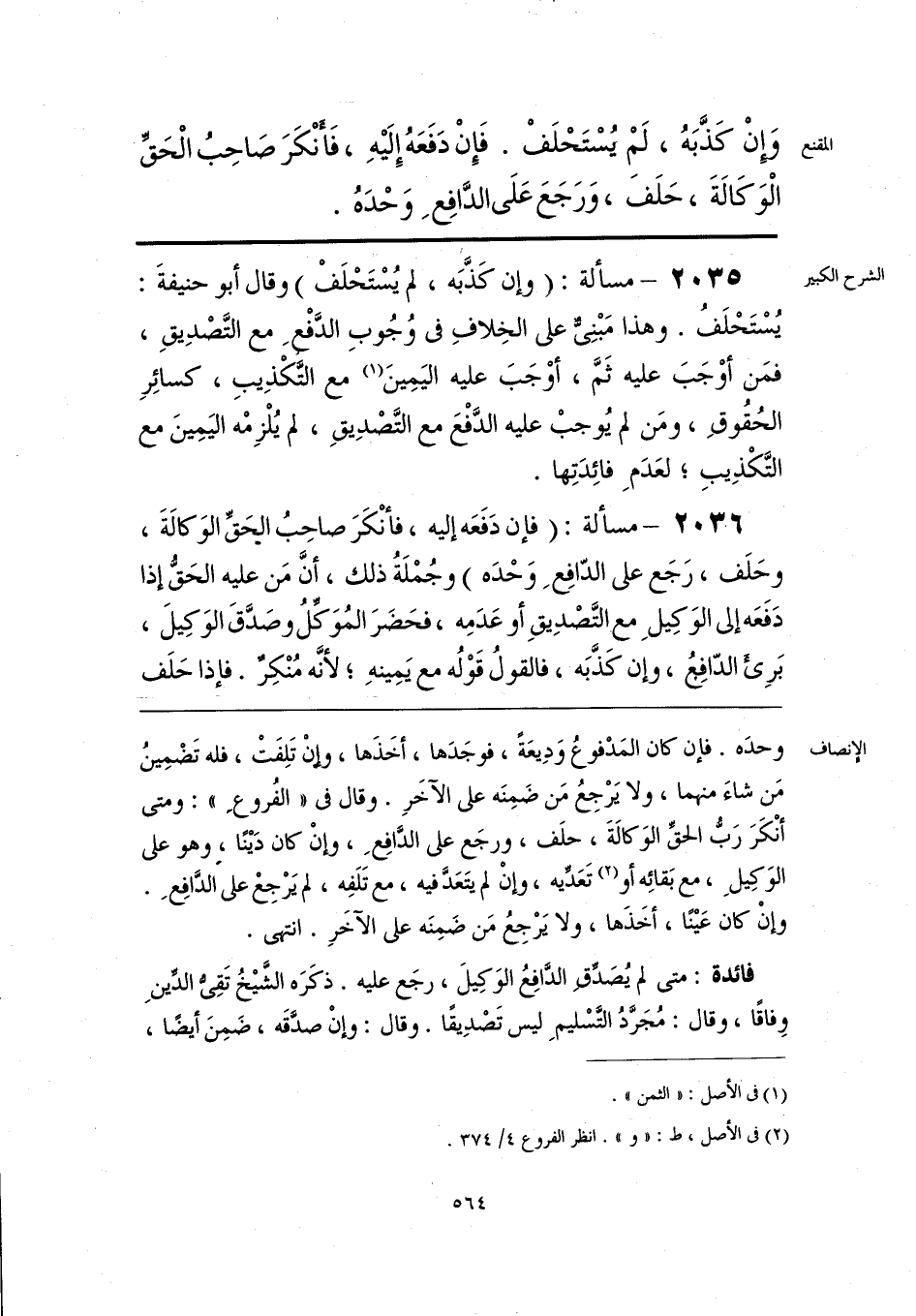 فائدة: متى لم يُصَدِّقِ الدَّافِعُ الوَكِيلَ، رجَع عليه. ذكَرَه الشَّيخُ تَقِيُّ الدِّينِ وفاقًا، وقال: مُجَرَّدُ التَّسْليمِ ليس تَصْدِيقًا. وقال: وإنْ صدَّقَه، ضَمِنَ أيضًا،