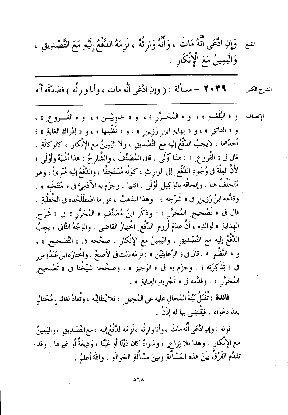 قوله: وإنِ ادَّعَى أَنَّه ماتَ، وأنا وارِثُه، لَزِمَه الدَّفْعُ إليه، مع التَّصدِيقِ، واليَمِينُ مع الإِنْكارِ. وهذا بلا نِزاعٍ، وسَواءٌ كان دَينًا أو عَينًا، وَدِيعَةً أو غيرَها. وقد تقدَّم الفَرْقُ بينَ هذه المَسْأَلَةِ وبينَ مسْأَلَةِ الحَوالةِ. واللهُ أعلمُ.