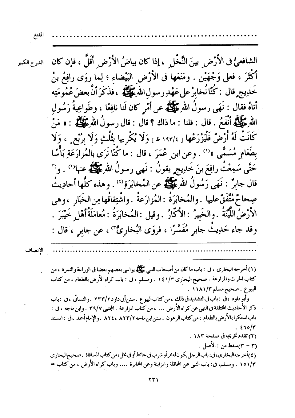 (¬3) أخرجه البخاري، في: باب الرجل يكون له ممر أو شرب في حائط أو في نخل، من كتاب المساقاة. صحيح البخاري 3/ 151. ومسلم، في: باب النهي عن المحاقلة والمزابنة وعن المخابرة. . . .، وباب كراء الأرض، من كتاب البيوع. صحيح مسلم 3/ 1174، 1175، 1177.