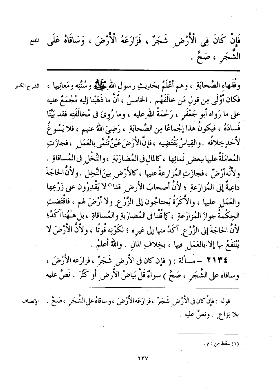قوله: فإِنْ كان في الأرْضِ شَجَرٌ، فزارَعَه الأرْضَ، وساقاهُ على الشَّجَرِ، صَحَّ. بلا نِزاعٍ. ونصَّ عليه.