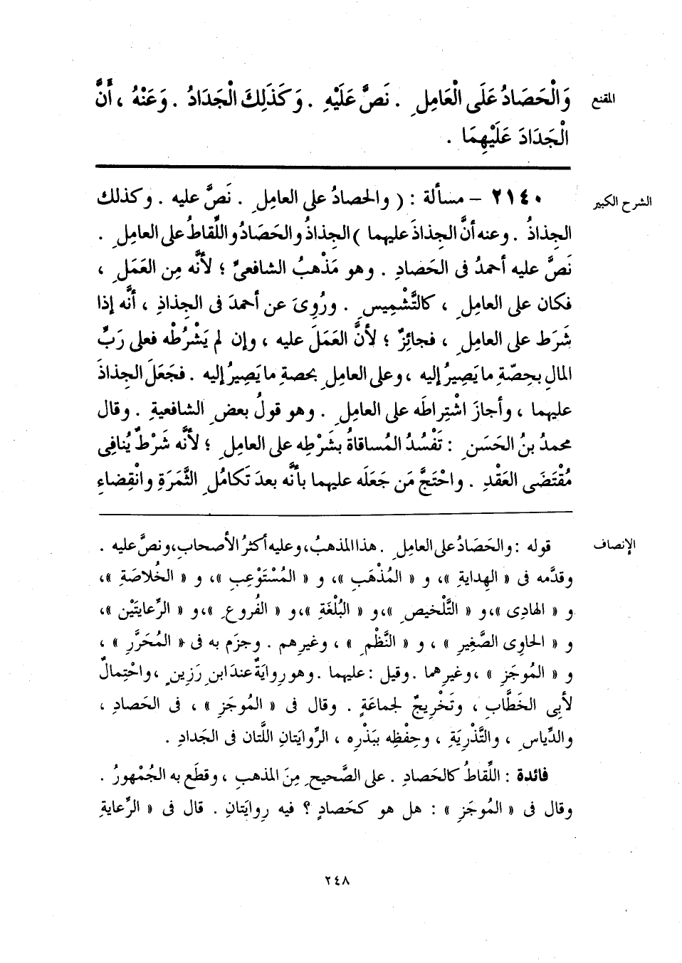 قوله: والحَصَادُ على العامِلِ. هذا المذهبُ، وعليه أكثرُ الأصحابِ، ونصَّ عليه. وقدَّمه في «الهِدايةِ»، و «المُذْهَبِ»، و «المُسْتَوْعِبِ»، و «الخُلاصَةِ»، و «الهادِي»، و «التَّلْخيصِ»، و «البُلْغَةِ»، و «الفُروعِ»، و «الرِّعايتَين»، و «الحاوي الصَّغِيرِ»، و «النَّظْمِ»، وغيرِهم. وجزَم به في «المُحَررِ»، و «المُوجَزِ»، وغيرِهما. وقيل: عليهما. وهو رِوايَةْ عندَ ابنِ رَزِينٍ، واحْتِمالٌ لأبِي الخَطَّابِ، وتَخْرِيجٌ لجماعَةٍ. وقال في «المُوجَزِ»، في الحَصادِ، والدِّياسِ، والتَّذْرِيَةِ، وحِفْظِه ببَذْرِه، الرِّوايَتانِ اللَّتان في الجَدادِ.