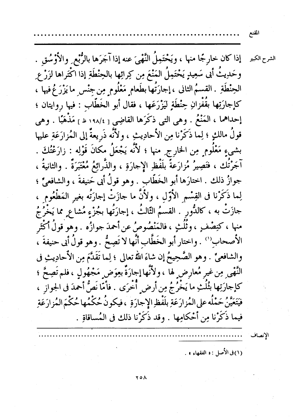 إذا كان خارِجًا منها، ويَحْتَمِلُ النَّهْيَ عنه إذا آجَرَها بالرُّبْعِ والأوْسُقِ. وحَدِيثُ أبي سَعِيدٍ يَحْتَمِلُ المَنْعَ مِن كِرائِها بالحِنْطَةِ إذا اكْتَراها لزَرْعِ الحِنْطَةِ. القسمُ الثاني، إجارَتُها بطَعامٍ مَعْلُومٍ مِن جِنْسِ ما يَزْرَعُ فيها، كإجارَتها بقُفْزانِ حِنْطَةٍ ليَزْرَعَها، فقال أبو الخَطّابِ: فيها رِوايتان؛ إحداهما، المَنْعُ. وهي التي ذكَرَها القاضِي مَذهَبًا. وهي قولُ مالكٍ؛ لِما ذَكَرْنا مِن الأحادِيثِ، ولأنَّه ذَرِيعةٌ إلى المُزارَعَةِ عليها بشيءٍ مَعْلُومٍ مِن الخارِج منها؛ لأنَّه يَجْعَلُ مكانَ قَوْلِه: زارَعْتُكَ. آجَرْتُك، فتَصِيرُ مُزارَعةً بلَفْظِ الإجارَةِ، والذَّرائِعُ مُعْتَبَرَة. والثانيةُ، جوازُ ذلك. اختارَها أبو الخَطّاب. وهو قولُ أبي حَنيفةَ، والشافعيِّ؛ لِما ذَكَرْنا في القِسْمِ الأوَّلِ، ولأَنَّ ما جازَتْ إجارَتُه بغيرِ المطْعُومِ، جازَتْ به، كالدُّورِ. القسمُ الثّالثُ، إجارَتُها بجُزْءٍ مُشاعٍ مما يَخرُجُ منها، كنِصْفٍ، وثُلُثٍ، فالمَنْصوصُ عن أحمدَ جوازُه. وهو قولُ أكثرِ الأصحابِ (¬1). واختار أبو الخَطَّابِ أنَّها لا تَصحُّ. وهو قولُ أبي حنيفةَ، والشافعي. وهو الصَّحِيحُ إن شاءَ اللهُ تعالى؛ لِما تَقَدَّمَ مِن الأحادِيثِ في النَّهْي مِن غيرِ مُعارِضٍ لها، ولأنَّها إجارَةٌ بعِوَضٍ مَجْهُولٍ، فلم تَصحَّ؛ كإجارَتِها بثُلُثِ ما يَخْرُجُ مِن أرضٍ أُخْرَى. فأمّا نَصُّ أحمدَ في الجوازِ، فيَتَعَيَّنُ حَمْلُه على المُزارَعَةِ بلَفْظِ الإجارَةِ، فيكونُ حُكْمُها حُكْمَ المُزارَعَةِ فيما ذَكَرْنا مِن أحْكامِهما. وقد ذَكَرْنا ذلك في المُساقاةِ.