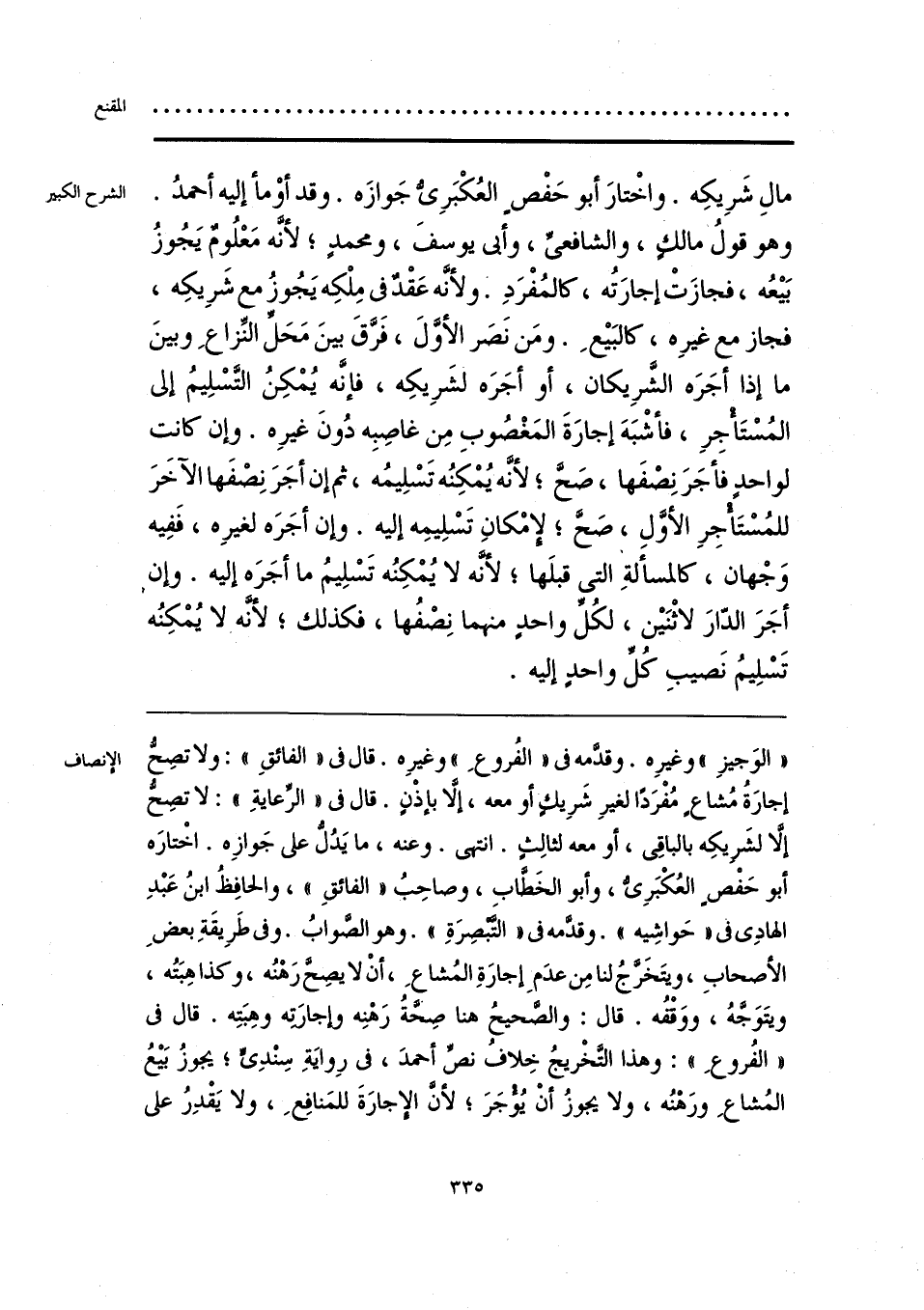 «الوَجيزِ» وغيرِه. وقدمه في «الفُروعِ» وغيرِه. قال في «الفائقِ»: ولا تصِح إجارَةُ مُشاعٍ مُفْرَدا لغيرِ شَرِيك أو معه، إلا بإذْن. قال في «الرِّعايةِ»: لا تصِح إلَّا لشَريكِه بالباقي، أو معه لثالثٍ. انتهى. وعنه، ما يَدُلُّ على جَوازِه. اخْتارَه أبو حَفْص العُكْبَرِي، وأبو الخَطَّاب، وصاحِبُ «الفائقِ»، والحافِظُ ابنُ عَبْدِ الهادِي في «حَواشِيه». وقدامه في «التبصِرَةِ». وهو الصوابُ. وفي طَرِيقَةِ بعضِ الأصحابِ، ويتَخَرَّجُ لنا مِن عدَمِ إجارَةِ المُشاع، أنْ لا يصِحَّ رَهْنُه، وكذا هِبَتُه، ويتَوَجَّهُ، ووَقْفُه. قال: والصحيحُ هنا صِحَّة رَهْنِه وإجارَته وهِبَتِه. قال في «الفُروعِ»: وهذا التَّخْريجُ خِلافُ نصِّ أحمدَ، في رِوايَةِ سِنْدِي؛ يجوزُ بَيعُ المُشاعِ ورَهْنُه، ولا يجوزُ أنْ يُؤجَرَ؛ لأن الإجارَةَ للمَنافِعِ، ولا يَقْدِرُ على