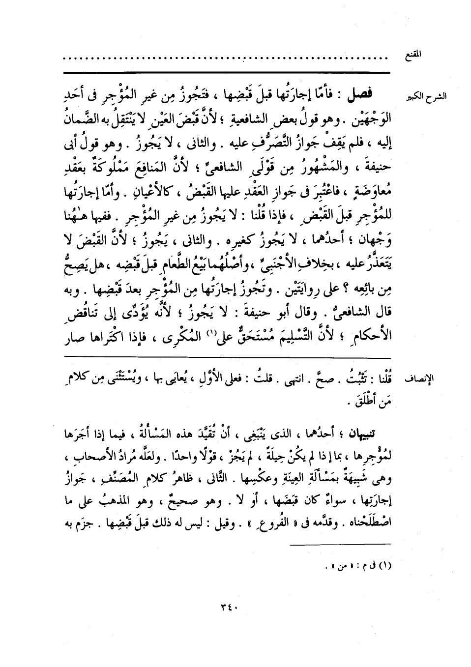 تنبيهان؛ أحدُهما، الذي يَنْبَغِي، أنْ تُقَيدَ هذه المَسألةُ، فيما إذا أجَرَها لمُؤجِرِها، بما إذا لم يكُنْ حِيلَة، لم يَجُزْ، قوْلا واحدًا. ولعَله مُرادُ الأصحابِ، وهي شَبِيهَة بمَسْألةِ العِينَةِ وعكْسِها. الثاني، ظاهرُ كلامِ المُصَنِّفِ، جَوازُ إجارَتها، سواء كان قبَضَها، أو لا. وهو صحيحٌ، وهو المذهبُ على ما اصْطَلَحْناه. وقدمه في «الفُروعِ». وقيل: ليس له ذلك قبلَ قَبْضِها. جزَم به
