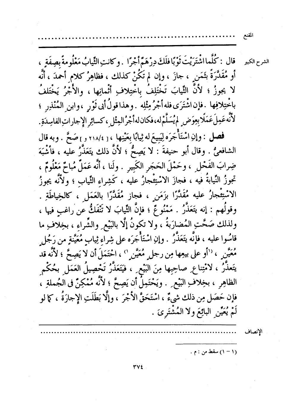 فصل: وإنِ اسْتَأْجَرَه لِيَبِيعَ له ثِيابًا بِعَينِها، صَحَّ. وبه قال الشافعيُّ. وقال أبو حنيفةَ: لا يَصِحُّ؛ لأنَّ ذلك يتَعَذَّرُ عليه، فأشْبَهَ ضِرابَ الفَحْلِ، وحَمْلَ الحَجَرِ الكَبِيرِ. ولَنا، أنَّه عَمَلٌ مُباحٌ مَعْلُومٌ، تجوزُ النِّيابةُ فيه، فجازَ الاسْتِئْجارُ عليه، كَشِراءِ الثِّيابِ؛ ولأنَّه يجوزُ الاسْتِئْجارُ عليه مُقَدَّرًا بزَمَنٍ، فجاز مُقَدَّرًا بالعَمَلِ، كالخِياطَةِ. وقولُهم: إنه يتَعَذَّرُ. مَمْنُوعٌ؛ فإنَّ الثِّيابَ لا تَنْفَكُّ عن راغبٍ فيها، ولذلك صَحَّتِ المُضارَبةُ، ولا تكونُ إلَّا بالبَيعِ والشِّراءِ، بخِلافِ ما قاسُوا عليه، فإنَّه يتَعَذَّرُ. وإنِ اسْتَأْجَرَه على شِراءِ ثِيابٍ مُعَيَّنةٍ من رَجُلٍ مُعَيَّنٍ، [أو على بيعِها مِن رجلٍ مُعَيَّنٍ] (¬1)، احْتَمَلَ أن لا يَصِحَّ؛ لأنَّه قد يتَعذَّرُ، لامْتِناعِ صاحِبِها مِنَ البَيعِ، فيَتَعَذَّرُ تَحْصِيلُ العَمَلِ بحُكْمِ الظاهِرِ، بخِلافِ البَيعِ. ويَحْتَمِلُ أن يَصِحَّ؛ لأَنه مُمْكِنٌ في الجُملةِ، فإن حَصَل مِن ذلك شيءٌ، اسْتَحَقَّ الأجْرَ، وإلَّا بَطَلَتِ الإِجارَةُ، كما لو لَمْ يُعَيِّنِ البائِعَ ولا المُشْتَرِيَ.