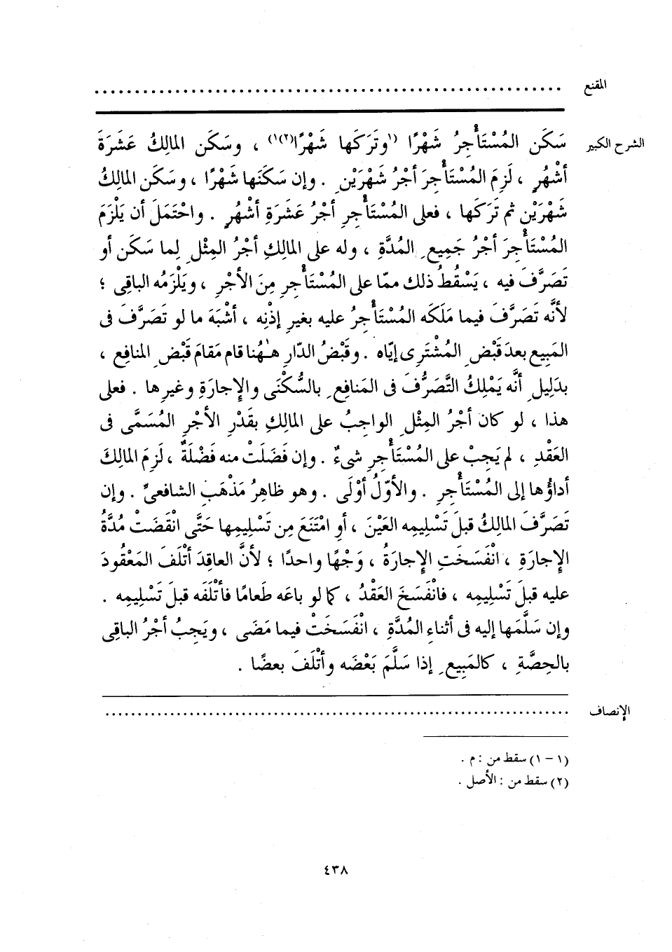 سَكَن المُسْتَأْجِرُ شَهْرًا [وتَرَكَها شَهْرًا (¬1)] (¬2)، وسَكَن المالِكُ عَشَرَةَ أشْهُرٍ، لَزِمَ المُسْتَأْجِرَ أجْرُ شَهْرَينِ. وإن سَكَنَها شَهْرًا، وسَكَن المالِكُ شَهْرَين ثم تَرَكَها، فعلى المُسْتَأْجِرِ أجْرُ عَشَرَةِ أشْهُر. واحْتَمَلَ أن يَلْزَمَ المُسْتَأْجِرَ أجْرُ جَمِيعِ المُدَّةِ، وله على المالِكِ أجْرُ المِثْلِ لِما سَكَن أو تَصَرَّفَ فيه، يَسْقُطُ ذلك ممّا على المُسْتَأْجِرِ مِنَ الأجْرِ، ويَلْزَمُه الباقِي، لأنَّه تَصَرَّفَ فيما مَلَكَه المُسْتَأْجِرُ عليه بغيرِ إذْنِه، أشْبَهَ ما لو تَصَرَّفَ في المَبِيع بعدَ قَبْضِ المُشْتَرِي إيّاه. وقَبْضُ الدّارِ ههُنا قام مَقامَ قَبْضِ المنافِع، بدَلِيلِ أنَّه يَمْلِكُ التَّصَرُّفَ في المَنافِعِ بالسُّكْنَى والإِجارَةِ وغيرِها. فعلى هذا، لو كان أجْرُ المِثْلِ الواجِبُ على المالِكِ بقَدْرِ الأجْرِ المُسَمَّى في العَقْدِ، لم يَجِبْ على المُسْتَأْجِرِ شيءٌ. وإن فَضَلَتْ منه فَضْلَة، لَزِمَ المالِكَ أداؤُها إلى المُسْتَأْجِرِ. والأوّلُ أوْلَى. وهو ظاهِرُ مَذْهَبِ الشافعيِّ. وإن تَصَرَّفَ المالِكُ قبلَ تَسْلِيمِه العَينَ، أو امْتَنَعَ مِن تَسْلِيمِها حَتَّى انْقَضَتْ مُدَّةُ الإِجارَةِ، انْفَسَخَتِ الإِجارَةُ، وَجْهًا واحدًا، لأنَّ العاقِدَ أتْلَفَ المَعْقُودَ عليه قبلَ تَسْلِيمِه، فانْفَسَخَ العَقْدُ،؛ لو باعَه طَعامًا فأتْلَفَه قبلَ تَسْلِيمِه. وإن سَلَّمَها إليه في أثناءِ المُدَّةِ، انْفَسَخَتْ فيما مَضَى، ويَجِبُ أجْرُ الباقِي بالحِصَّةِ، كالمَبِيعِ إذا سَلَّمَ بَعْضَه وأتْلَفَ بعضًا.