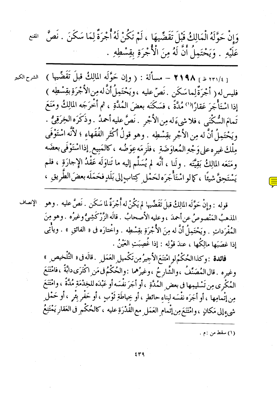 قوله: وإنْ حَوَّلَه المالِكُ قبلَ تَقَضِّيها لم يَكُنْ له أُجْرَةٌ لما سَكَن. نَصَّ عليه. وهو المذهبُ المَنْصوصُ عن أحمدَ، وعليه الأصحابُ. قاله الزَّرْكَشِيُّ وغيرُه. وهو مِنَ المُفْرَداتِ. ويَحْتَمِلُ أنَّ له مِنَ الأُجْرَةِ بقِسْطِه. واخْتارَه في «الفائقِ». ويأْتِي إذا غصَبَها مالِكُها، عندَ قوْلِه: إذا غُصِبَتِ العَينُ.
