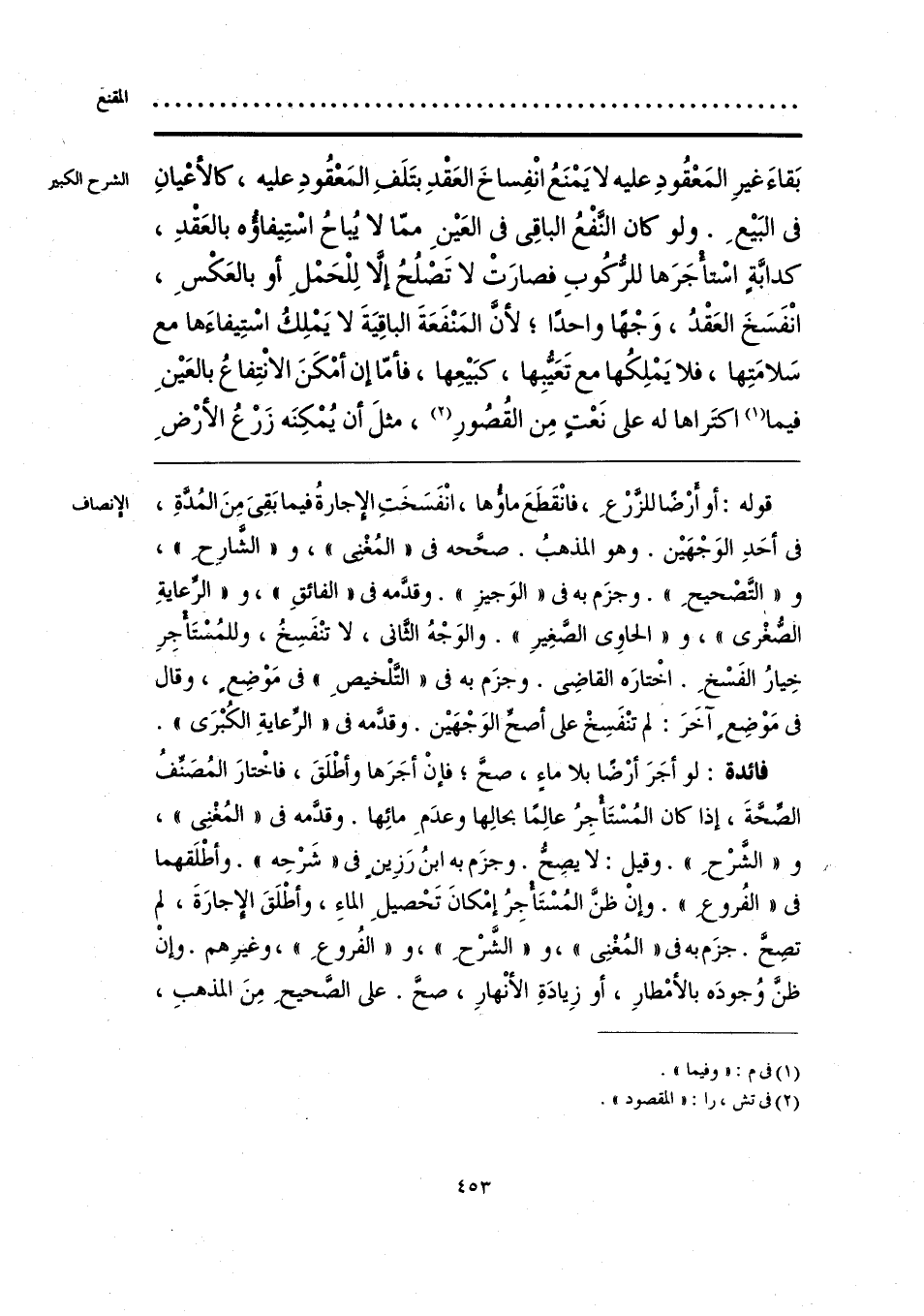 قوله: أو أرْضًا للزَّرْعِ، فانْقَطَعَ ماؤُها، انْفَسَخَتِ الإجارةُ فيما بَقِيَ مِنَ المُدَّةِ، في أحَدِ الوَجْهَين. وهو المذهبُ. صحَّحه في «المُغْني»، و «الشَّارحِ»، و «التَّصْحيحِ». وجزَم به في «الوَجيزِ». وقدَّمه في «الفائقِ»، و «الرِّعايةِ الصُّغْرى»، و «الحاوي الصَّغِيرِ». والوَجْهُ الثَّاني، لا تنْفَسِخُ، وللمُسْتأْجِرِ خِيارُ الفَسْخِ. اخْتارَه القاضِي. وجزَم به في «التَّلْخيصِ» في مَوْضِعٍ، وقال في مَوْضِعٍ آخَرَ: لم تنْفَسِخْ على أصحِّ الوَجْهَين. وقدَّمه في «الرِّعايةِ الكُبْرَى».