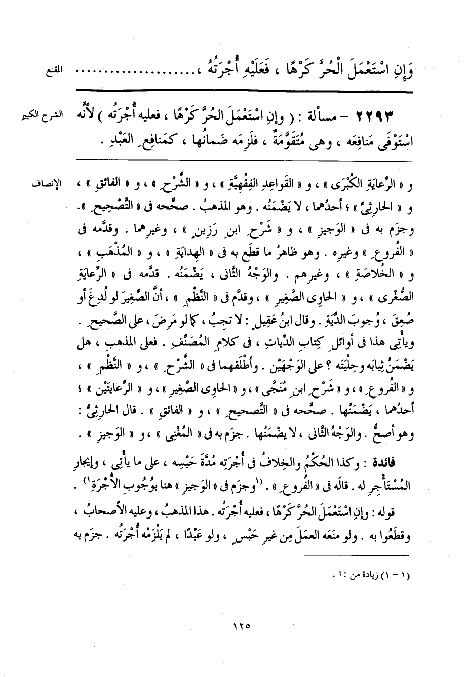 قوله: وإنِ اسْتَعْمَلَ الحُرَّ كَرْهًا، فعليه أُجرَتُه. هذا المذهبُ، وعليه الأصحابُ، وقطَعُوا به. ولو منَعَه العمَلَ مِن غيرِ حَبْسٍ، ولو عَبْدًا، لم يَلْزَمْه أُجْرَتُه. جزَم به