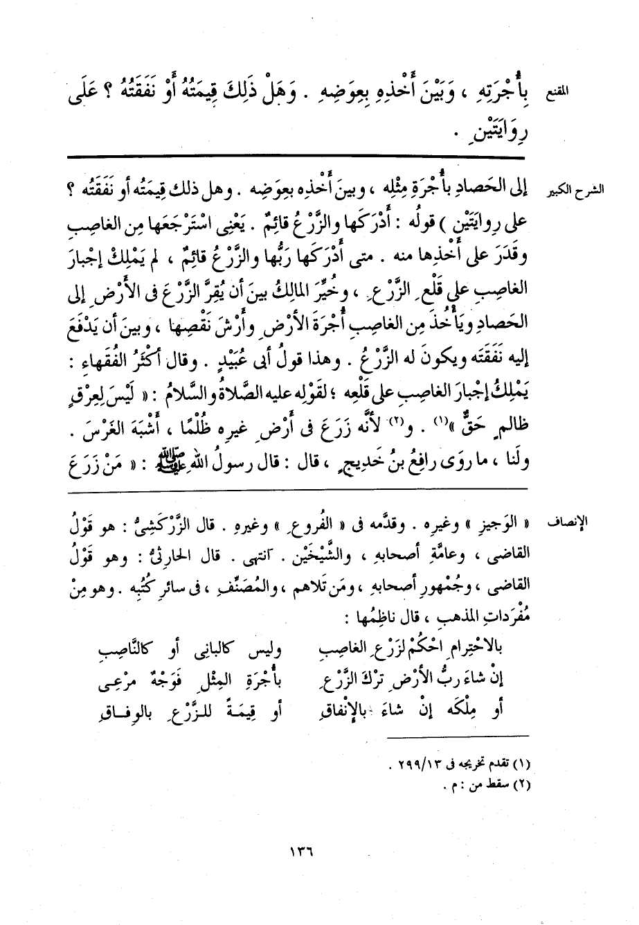 إنْ شاءَ ربُّ الأرْضِ ترْكَ الزَّرْعِ … بأْجْرَةِ المِثْلِ فَوَجْهٌ مرْعِى