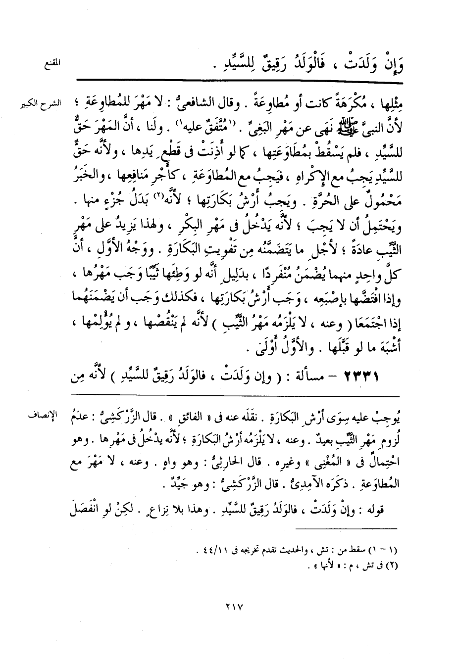 وَإنْ وَلَدَتْ، فَالْوَلَدُ رَقِيقٌ لِلسَّيِّدِ.