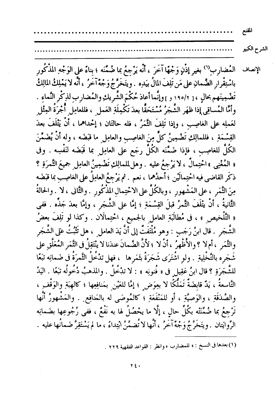 (¬1) بعدها في النسخ: «للمضاربة» وانظر: القواعد الفقهية 229.