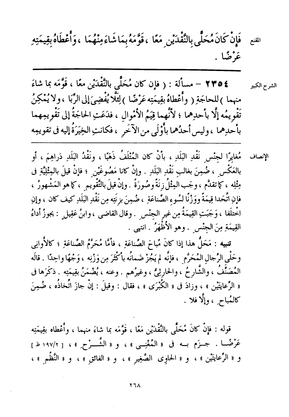 قوله: فإن كانَ مُحَلّى بالنقْدَين مَعًا، قَوَّمَه بما شاءَ منهما، وأعْطاه بقِيمَتِه عَرْضًا. جزَم به في «المُغْنِي»، و «الشَّرْحِ»، و «الرعايتَين»، و «الحاوي الصَّغِيرِ»، و «الفائقِ»، و «النَّظْمِ»،