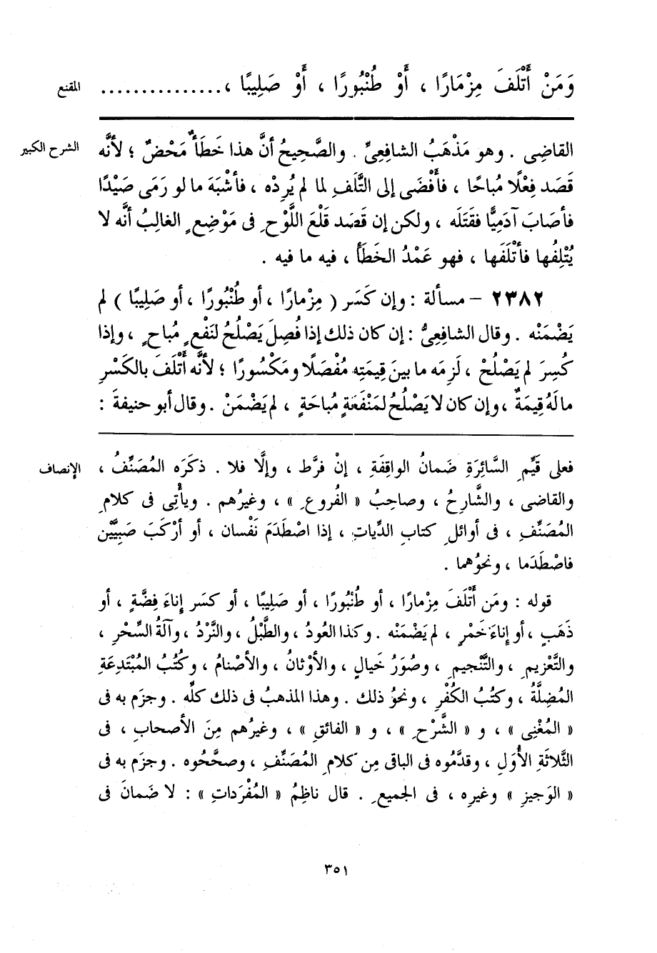 وَمَنْ أَتْلفَ مِزْمَارًا، أوْ طُنْبُورًا، أَوْ صَلِيبًا،