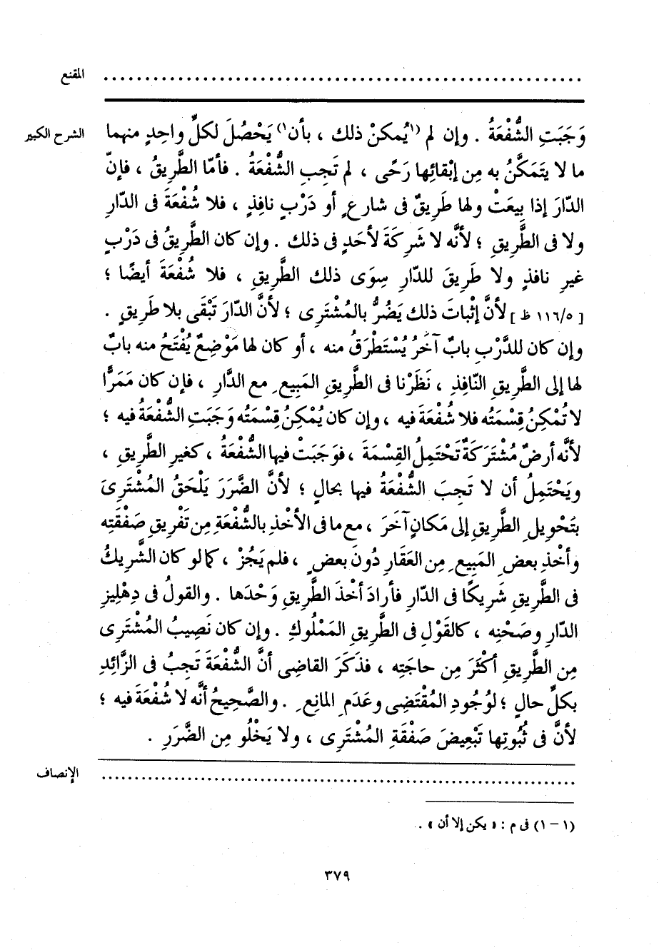 وَجَبَتِ الشُّفْعَةُ. وإن لم [يُمكنْ ذلك، بأن] (¬1) يَحْصُلَ لكلِّ واحِدٍ منهما ما لا يتَمَكَّنُ به مِن إبْقائِها رَحًى، لم تَجِبِ الشُّفْعَةُ. فأمّا الطَّرِيقُ، فإنّ الدّارَ إذا بيعَتْ ولها طَرِيقٌ في شارعٍ أو دَرْبٍ نافِذٍ، فلا شُفْعَةَ في الدّارِ ولا في الطَّرِيقِ؛ لأنَّه لا شَرِكَةَ لأحَدٍ في ذلك. وإن كان الطَّرِيقُ في دَرْبٍ غيرِ نافذٍ ولا طَرِيقَ للدّارِ سِوَى ذلك الطَّرِيقِ، فلا شُفْعَةَ أيضًا؛ لأنَّ إثْباتَ ذلك يَضُرُّ بالمُشْتَرِي؛ لأنَّ الدّارَ تَبْقَى بلا طَرِيقٍ. وإن كان للدَّرْبِ بابٌ آخَرُ يُسْتَطْرَقُ منه، أو كان لها مَوْضِعٌ يُفْتَحُ منه بابٌ لها إلى الطَّرِيقِ النّافِذِ، نَظَرْنا في الطَّرِيق المَبِيعِ مع الدَّارِ، فإن كان مَمَرًّا لا تُمْكِنُ قِسْمَتُه فلا شُفْعَةَ فيه، وإن كان يُمْكِنُ قِسْمَتُه وَجَبَتِ الشُّفْعَةُ فيه؛ لأنَّه أرضٌ مُشْتَرَكَة تَحْتَمِلُ القِسْمَةَ، فوَجَبَتْ فيها الشفْعَةُ، كغيرِ الطرِيقِ، ويَحْتَمِلُ أنَّ لا تَجِبَ الشُّفْعَةُ فيها بحالٍ؛ لأنَّ الضَّرَرَ يَلْحَقُ المُشْتَرِيَ بتَحْويلِ الطرِيقِ إلى مَكانٍ آخَرَ، مِع ما في الأخْذِ بالشفْعَةِ مِن تَفْرِيقِ صَفقَتِه وأخْذِ بعضِ المَبِيعِ مِن العَقَارِ دُون بعضٍ، فلم يَجُزْ، كما لو كان الشَّرِيكُ في الطَّرِيقِ شَرِيكًا في الدّارِ فأرادَ أخْذَ الطَّرِيقِ وَحْدَها. والقولُ في دِهْلِيزِ الدّارِ وصَحْنِه، كالقَوْلِ في الطَّرِيقِ المَمْلُوكِ. وإن كان نَصِيبُ المُشْتَرِي مِن الطرِيقِ أكْثَرَ مِن حاجَتِه، فذَكَرَ القاضِي أنَّ الشُّفْعَةَ تَجِبُ في الزَّائِدِ بكل حال؛ لوُجُودِ المُقْتَضِي وعَدَمِ المانِعِ. والصَّحِيحُ أنَّه لا شُفْعَةَ فيه؛ لأن في ثُبُوتِها تَبْعِيضَ صَفْقَةِ المُشْتَرِي، ولا يَخْلُو مِن الضَّرَرِ.