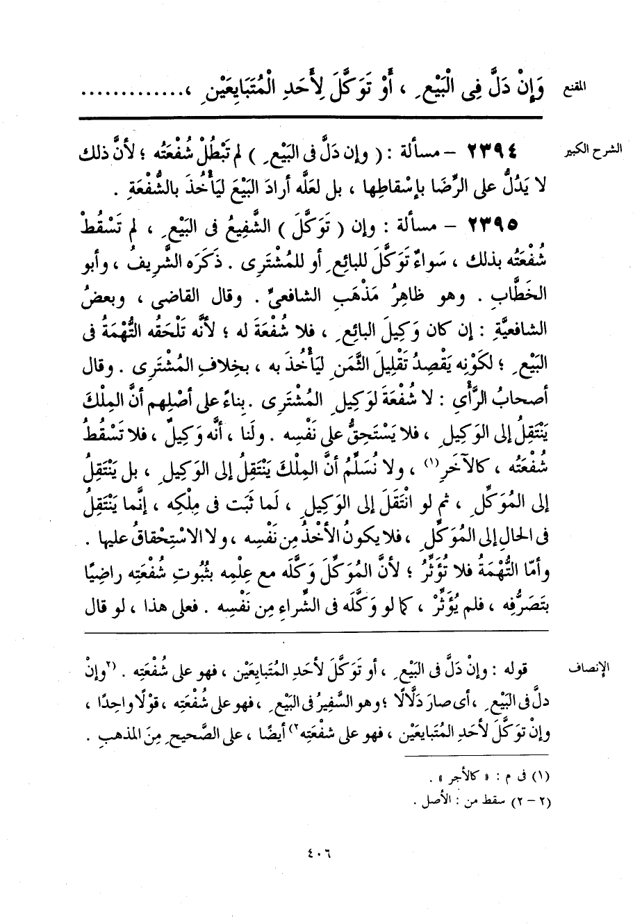 قوله: وإنْ دَلَّ في البَيعِ، أو تَوَكَّلَ لأحَدِ المُتَبايِعَين، فهو على شُفْعَتِه. [وإنْ دلَّ في البَيعِ، أي صارَ دَلَّالًا؛ وهو السَّفِيرُ في البَيعِ، فهو على شُفْعَتِه، قوْلًا واحِدًا، وإنْ توَكَّلَ لأحَدِ المُتَبايعَين، فهو على شفْعَتِه] (¬1) أيضًا، على الصَّحيحِ مِنَ المذهبِ.