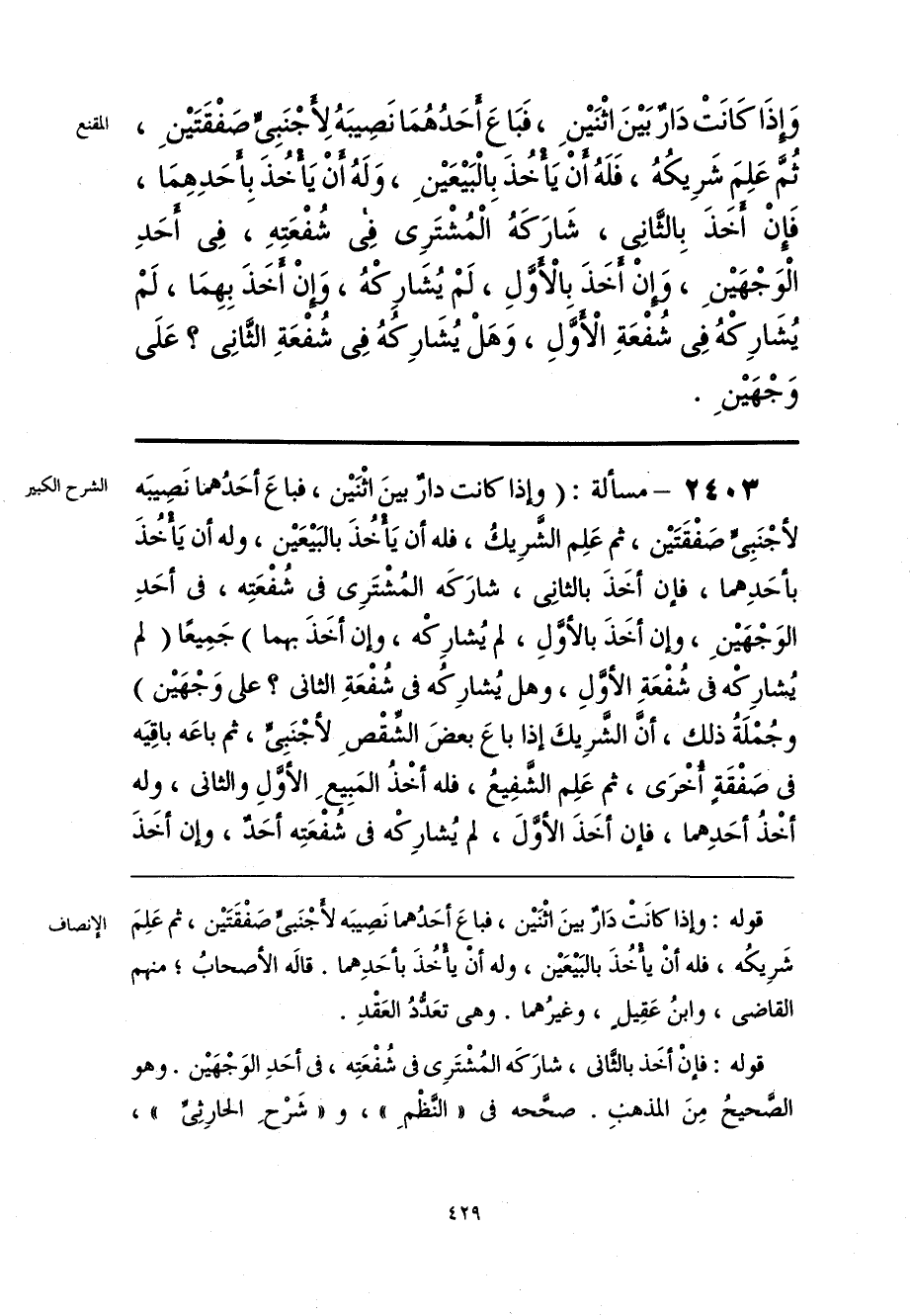 قوله: وإذا كانَتْ دَارٌ بينَ اثْنَين، فباعَ أحَدُهما نَصِيبَه لأَجْنَبيٍّ صَفْقَتَين، ثم عَلِمَ شَرِيكُه، فله أنْ يأْخُذَ بالبَيعَين، وله أنْ يأْخُذَ بأحَدِهما. قَاله الأصحابُ؛ منهم القاضي، وابنُ عَقِيلٍ، وغيرُهما. وهي تعَدُّدُ العَقْدِ.
