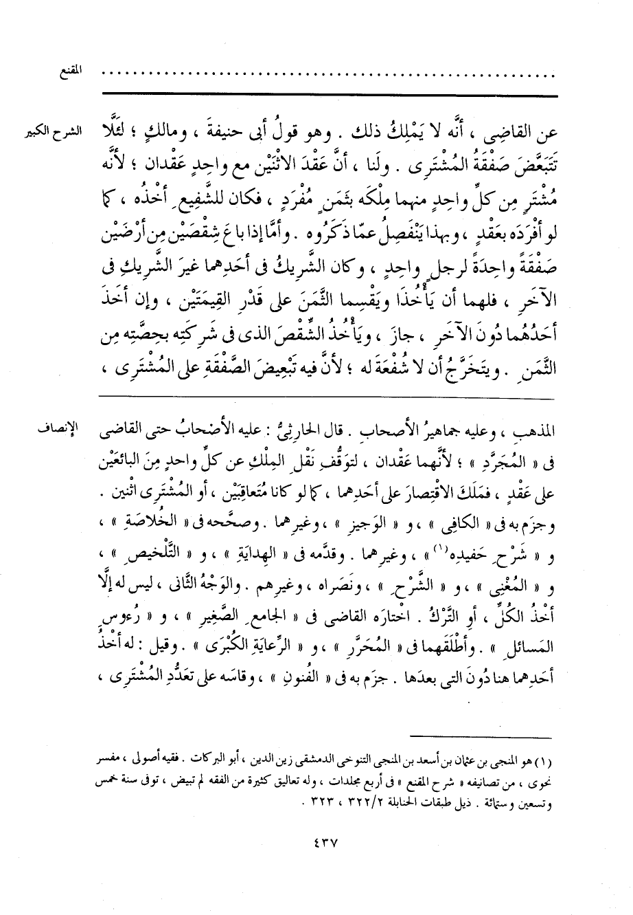 (¬1) هو المنجى بن عثمان بن أسعد بن المنجى التنوخي الدمشقي زين الدين، أبو البركات. فقيه أصولي، مفسر نحوي، من تصانيفه «شرح المقنع» في أربع مجلدات، وله تعاليق كثيرة من الفقه لم تبيض، توفي سنة خمس وتسعين وستمائة. ذيل طبقات الحنابلة 2/ 322، 323.