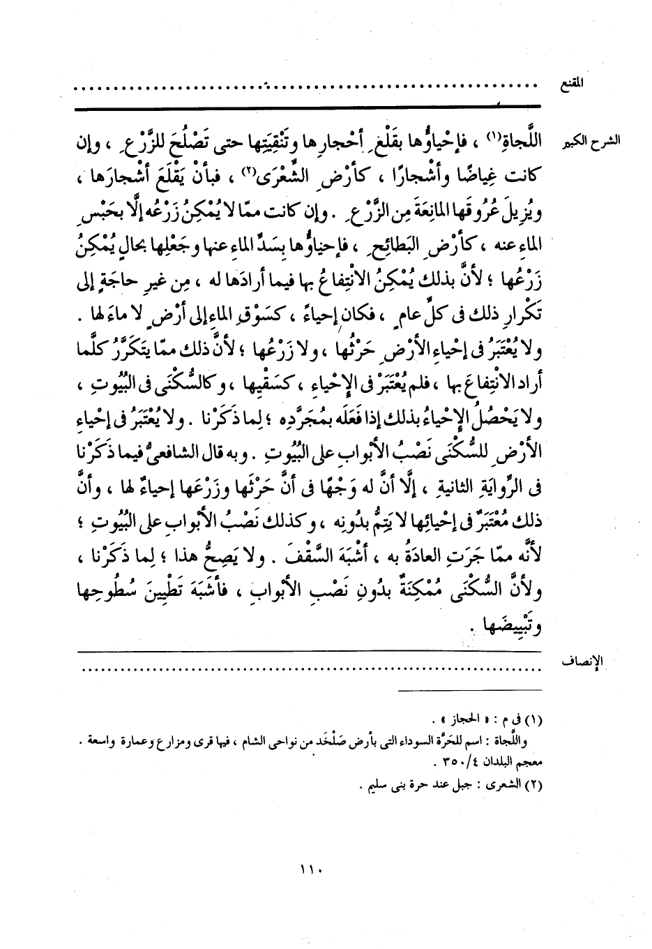 اللَّجاةِ (¬1)، فإحْياؤُها بقَلْعِ أحْجارِها وتَنْقِيَتِها حتى تَصْلُحَ للزَّرْعِ، وإن كانت غِياضًا وأشْجارًا، كأرْضِ الشِّعْرَى (¬2)، فبأنْ يَقْلَعَ أشْجارَها، ويُزِيلَ عُرُوقَها المانِعَةَ مِن الزَّرْعِ. وإن كانت ممَّا لا يُمْكِنُ زَرْعُه إلَّا بحَبْسِ الماءِ عنه، كأرْضِ البَطائِحِ، فإحياؤُها بِسَدِّ الماءِ عنها وجَعْلِها بحالٍ يُمْكِنُ زَرْعُها؛ لأنَّ بذلك يُمْكِنُ الانْتِفاعُ بها فيما أرادَها له، مِن غيرِ حاجَةٍ إلى تَكْرارِ ذلك في كلِّ عامٍ، فكان إحياءً، كسَوْقِ الماءِ إلى أرْضٍ لا ماءَ لها. ولا يُعْتَبَرُ في إحْياءِ الأرْضِ حَرْثُها، ولا زَرْعُها؛ لأنَّ ذلك ممَّا يتَكَرَّرُ كلَّما أراد الانْتِفاعَ بها، فلم يُعْتَبَرْ في الإِحْياءِ، كسَقْيِها، وكالسُّكْنَى في البُيُوتِ، ولا يَحْصُلُ الإِحْياءُ بذلك إذا فَعَلَه بمُجَرَّدِه؛ لِما ذَكَرْنا. ولا يُعْتَبَرُ في إحْياءِ الأرْضِ للسُّكْنَى نَصْبُ الأبْوابِ على البُيُوتِ. وبه قال الشافعيُّ فيما ذَكَرْنا في الرِّوايَةِ الثانيةِ، إلَّا أنَّ له وَجْهًا في أنَّ حَرْثَها وزَرْعَها إحياءٌ لها، وأنَّ ذلك مُعْتَبَرٌ في إحْيائِها لا يَتِمُّ بدُونِه، وكذلك نَصْبُ الأبْوابِ على البُيُوتِ؛ لأنّه ممَّا جَرَتِ العادَةُ به، أشْبَهَ السَّقْفَ. ولا يَصِحُّ هذا؛ لِما ذَكَرْنا، ولأنَّ السُّكْنَى مُمْكِنَةٌ بدُونِ نَصْبِ الأبْوابِ، فأشَبَهَ تَطْيِينَ سُطُوحِها وتَبْيِيضَها.