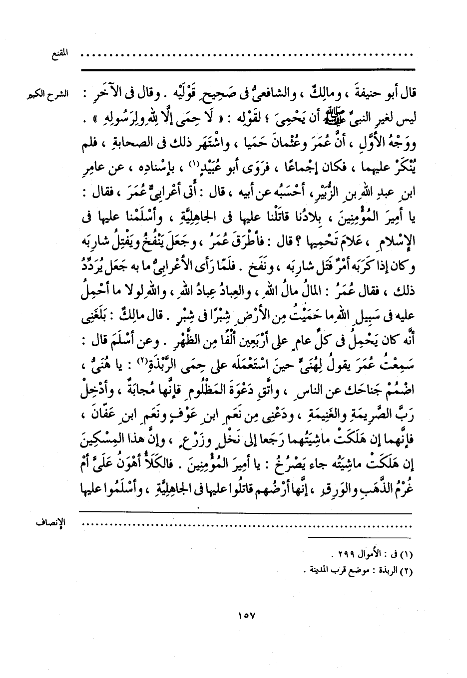 قال أبو حنيفةَ، ومالِكٌ، والشافعي في صَحِيحِ قَوْلَيه. وقال في الآخَرِ: ليس لغيرِ النبيِّ - صلى الله عليه وسلم - أن يَحْمِيَ؛ لقَوْلِه: «لَا حِمَى إلَّا لِلّهِ ولِرَسُولِهِ». ووَجْهُ الأولِ، أن عُمَرَ وعُثْمانَ حَمَيا، واشْتَهَر ذلك في الصحابةِ، فلم يُنْكَرْ عليهما، فكان إجْماعًا، فرَوَى أبو عُبَيدٍ (¬1)، بإسْنادِه، عن عامِرِ بنِ عبدِ اللهِ بنِ الزُّبيرِ، أحْسَبُه عن أبيه، قال: أتى أعْرابِي عُمَرَ، فقال: يا أمِيرَ المُومِنِينَ، بِلادُنا قاتَلْنا عليها في الجاهِلِيةِ، وأسْلَمْنا عليها في الإسْلامِ، عَلامَ تَحْمِيها؟ قال: فأطْرَقَ عُمَرُ، وجَعَلَ يَنْفُخ ويَفْتِلُ شارِبَه وكان إذا كَرَبَه أمْر قتَل شارِبَه، ونَفَخ. فلَمّا رَأى الأعْرابِيُّ ما به جَعَل يُرَدِّدُ ذلك، فقال عُمَرُ: المال مالُ اللهِ، والعِبادُ عِبادُ اللهِ، واللهِ لولا ما أحْمِلُ عليه في سَبِيلِ اللهِ ما حَمَيتُ مِن الأرْضِ شِبْرًا في شِبْر. قال مالِك: بَلَغَنِي أنَّه كان يَحْمِلُ في كلِّ عام على أرْبَعِين ألْفًا مِن الظَّهْرِ. وعن أسْلَمَ تال: سَمِعْتُ عُمَرَ يقولُ لِهُنَيٍّ حينَ اسْتَعْمَلَه على حِمَى الربْذَةِ (¬2): يا هُنَيُّ، اضْمُمْ جَناحَك عن الناسِ، واتَّقِ دَعْوَةَ المَظْلُومِ فإنها مُجابَةٌ، وأدْخِلْ رَبَّ الصرِيمَةِ والغَنِيمَةِ، ودَعْنِي مِن نَعَمِ بنِ عَوْفٍ ونَعَمِ بنِ عَفّانَ، فإنَّهما إن هَلَكَتْ ماشِيَتُهما رَجَعا إلى نَخْل وزَرْع، وإن هذا المِسْكِينَ إن هَلَكَتْ ماشِيَتُه جاء يَصْرُخُ: يا أمِيرَ المُومِنِينَ. فالكَلأ أهْوَنُ عَلَيَّ أمْ غُرْمُ الذَّهَبِ والوَرِق، إنَّها أرْضُهم قاتلُوا عليها في الجاهِلِيةِ، وأسْلَمُوا عليها