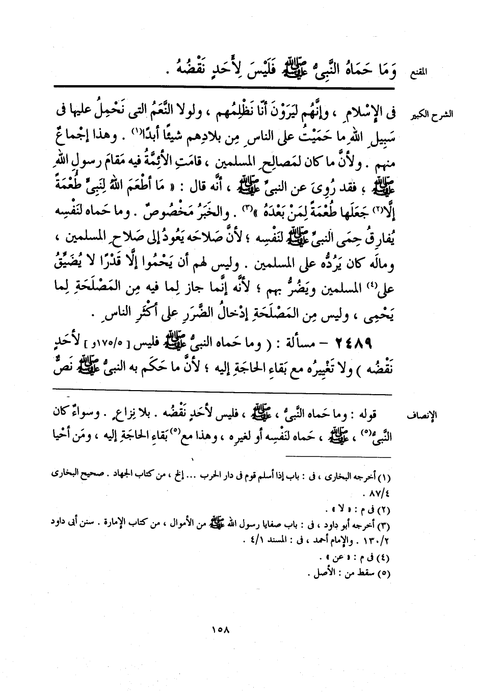 وَمَا حَمَاهُ النبِي - صلى الله عليه وسلم - فَلَيسَ لِأحَدٍ نَقْضُهُ.