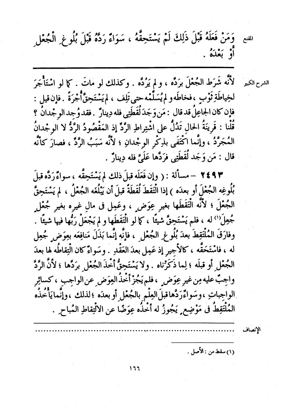 وَمَنْ فَعَلَهُ قَبْلَ ذَلِك لَمْ يَسْتَحِقَّهُ، سَواء رَدَّهُ قَبْلَ بُلُوغِ الْجُعْل أوْ بَعْدَهُ.