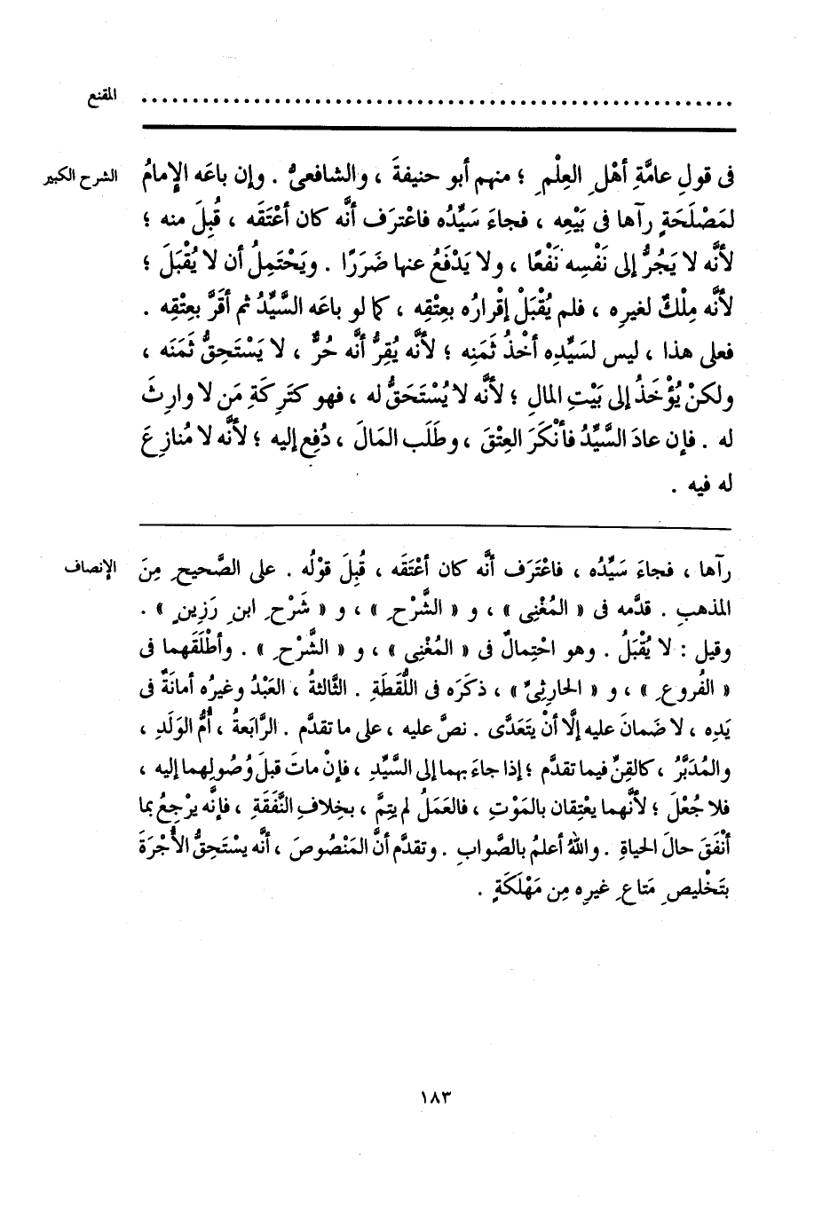 رآها، فجاءَ سَيِّدُه، فاعْتَرَف أنه كان أعْتَقَه، قُبِلَ قوْلُه. على الصحيع مِنَ المذهبِ. قامه في «المُغْنِي»، و «الشرْحِ»، و «شَرْحِ ابنِ رَزِين». وقيل: لا يقبَلُ. وهو احْتِمالٌ في «المُغْنِي»، و «الشرْحِ». وأطْلَقَهما في «الفُروعِ» و «الحارِثِيِّ»، ذكَرَه في اللقَطَةِ. الثالثةُ، العَبْدُ وغيرُه أمانَة في يَدِه، لا ضَمانَ عليه إلا أن يتَعَدَّى. نص عليه، على ما تقدم. الرابَعةُ، أمُّ الوَلَدِ، والمُدَبرُ، كالقِنِّ فيما تقدم؛ إذا جاءَ بهما إلى السيِّدِ، فإنْ ماتَ قبلَ وُصُولهما إليه، فلا جُعْلَ؛ لأنهما يعْتِقان بالمَوْتِ، فالعَمَلُ لم يتم، بخِلافِ النَّفَقَةِ، فإنه يرْجِعُ بما أنْفَقَ حال الحياةِ. واللهُ أعلمُ بالصوابِ. وتقدم أن المَنْصُوصَ، أنه يسْتَحِقُّ الأجْرَةَ بتَخْليصِ مَتاعِ غيره مِن مَهْلَكَةٍ.
