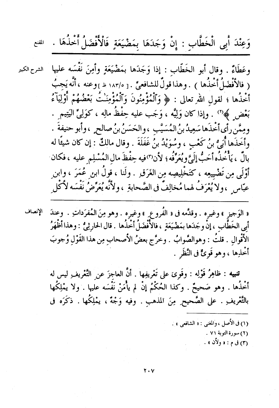 «الوَجيز» وغيرِه. وقدَّمه في «الفُروعِ» وغيرِه. وهو مِنَ المُفرَداتِ. وعندَ أبِي الخَطَّابِ، إنْ وجَدَها بمَضْيَعَةٍ، فالافْضَلُ أخْذُها. قال الحارِثِيُّ: وهذا أظْهَرُ الأقْوالِ. قلتُ: وهو الصَّوابُ. وخرَّج بعضُ الأصحابِ مِن هذا القَوْلِ وُجوبَ أخْذِها، وهو قَوي في النَّظَرِ.