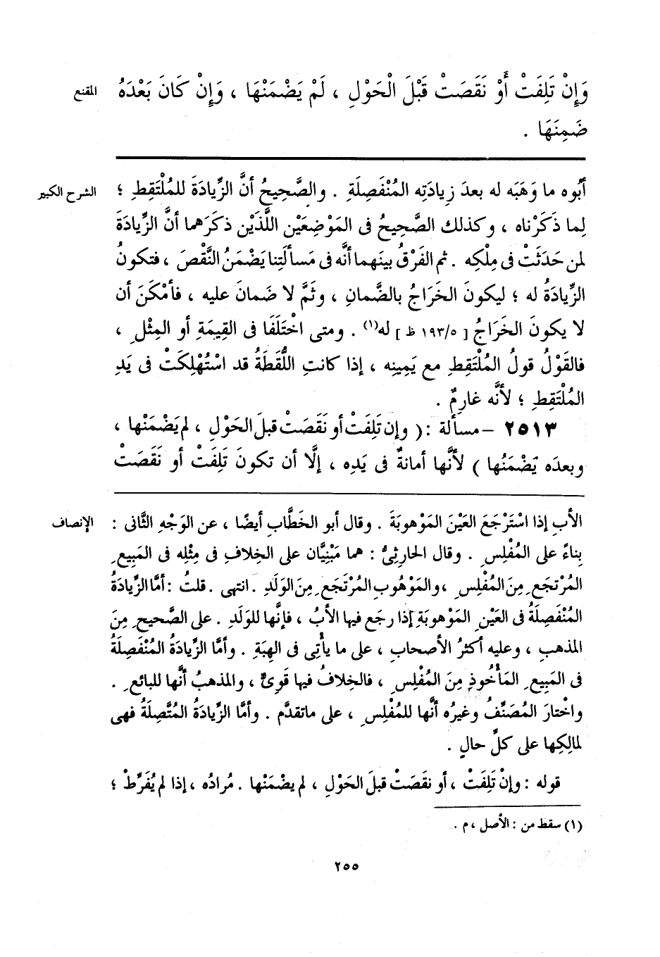 الأبِ إذا اسْتَرْجَعَ العَينَ المَوْهوبَةَ. وقال أبو الخَطَّابِ أيضًا، عن الوَجْهِ الثَّاني: بِناءً على المُفْلِسِ. وقال الحارِثِيُّ: ما مَبْنِيَّان على الخِلافِ في مِثْلِه في المَبِيعِ المُرْتجَعِ مِنَ المُفْلِسِ، والمَوْهُوبِ المُرْتَجَعِ مِنَ الوَلَدِ. انتهى. قلتُ: أمَّا الزِّيادَةُ المُنْفَصِلَةُ في العَينِ المَوْهوبَةِ إذا رجَع فيها الأبُ، فإنَّها للوَلَدِ. على الصَّحيحِ مِنَ المذهبِ، وعليه أكثرُ الأصحابِ، على ما يأْتِي في الهِبَةِ. وأمَّا الزِّيادَةُ المُنْفَصِلَةُ في المَبِيعِ المأْخُوذ مِنَ المُفْلِسِ، فالخِلافُ فيها قَويٌّ، والمذهبُ أنَّها للبائعِ. واخْتارَ المُصَنفُ وغيرُه أنَّها للمُفْلِسِ، على ما تقدَّم. وأمَّا الزِّيادَةُ المُتصِلَةُ فهي لمالِكِها على كلِّ حالٍ.
