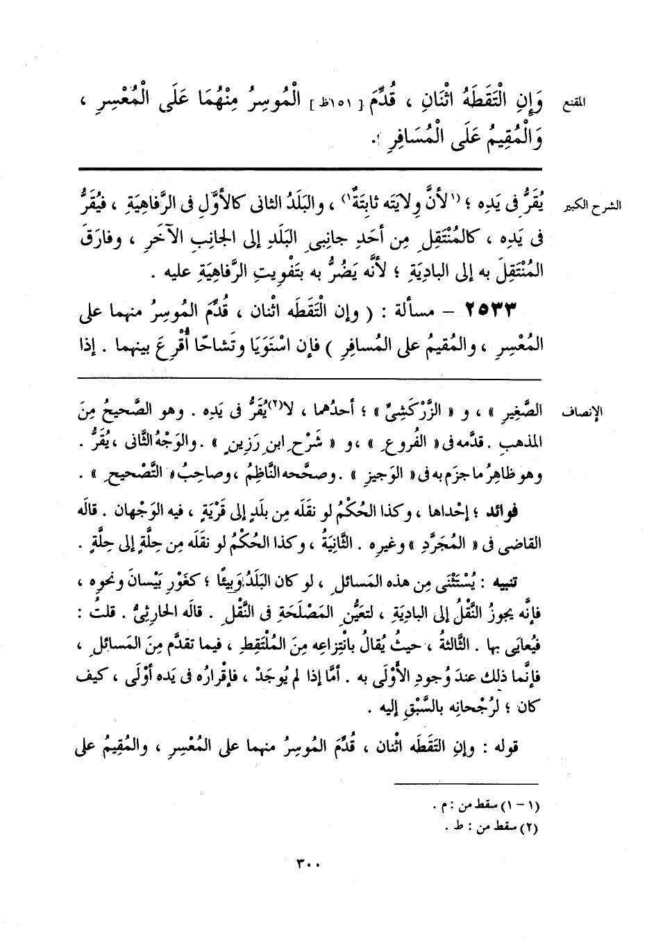 قوله: وإنِ التَقَطَه اثْنان، قُدِّمَ المُوسِرُ منهما على المُعْسِرِ، والمُقِيمُ على