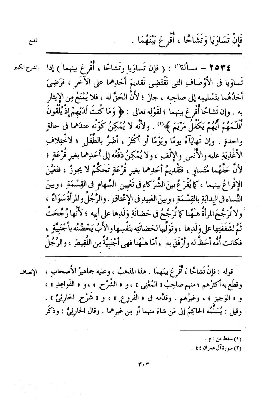 قوله: فإنْ تَشاحَّا؛ أُقرِعَ بينَهما. هذا المذهبُ، وعليه جماهيرُ الأصحابِ، وقطَع به أكثرُهم؛ منهم صاحِبُ «المُغْنِي»، و «الشرْحِ»، و «القَواعِدِ»، و «الوَجيزِ»، وغيرُهم. وقدَّمه في «الفُروعِ»، و «شَرْحِ الحارِثِيِّ». وقيل: يُسَلِّمُه الحاكِمُ إلى مَن شاءَ منهما أو مِن غيرِهما. وقال الحارِثِيُّ: وذكَر