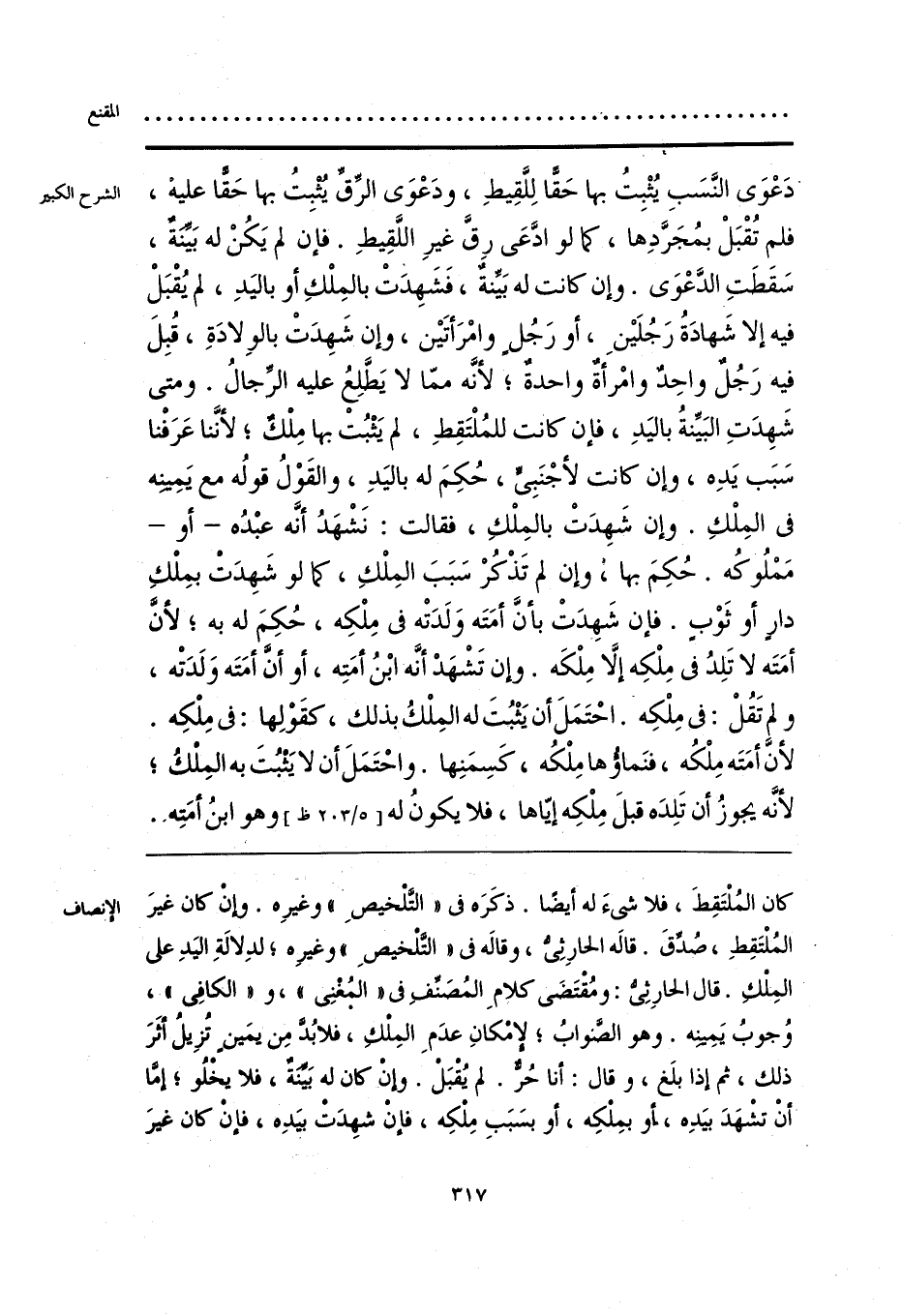 كان المُلْتَقِطَ، فلا شيءَ له أيضًا. ذكَرَه في «التَّلْخيصِ» وغيرِه. وإنْ كان غيرَ المُلْتَقِطِ، صُدِّقَ. قاله الحارِثِيُّ، وقاله في «التلْخيصِ» وغيرِه، لدِلالةِ اليَدِ على المِلْكِ. قال الحارِثِيُّ: ومُقْتَضَى كلامِ المُصَنِّفِ في «المُغنِي»، و «الكافِي»، وُجوبُ يَمِينِه. وهو الصَّوابُ؛ لإِمْكانِ عدَمِ المِلْكِ، فلا بُدَّ مِن يمَينٍ تُزِيلُ أثَرَ ذلك، ثم إذا بلَغ، وقال: أنا حُرٌّ. لم يُقْبَل. وإن كان له بَيِّنَةٌ، فلا يخْلُو؛ إمَّا أنْ تشْهَدَ بيَدِه، أو بمِلْكِه، أو بسَبَبِ مِلْكِه، فإنْ شهِدَت بيَدِه، فإنْ كان غيرَ