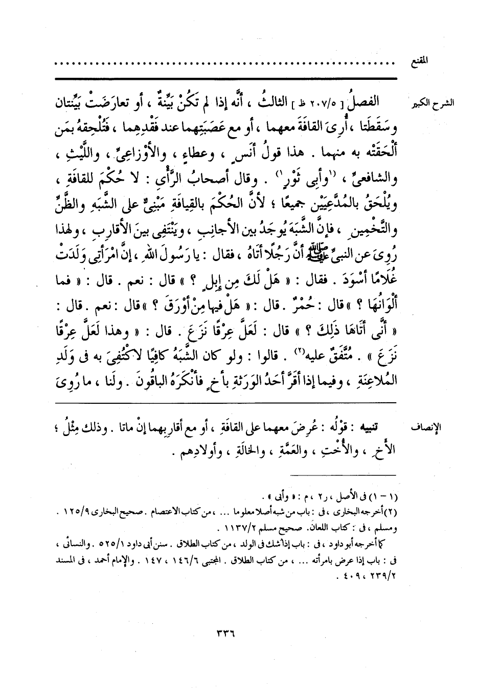 تنبيه: قوْلُه: عُرِضَ معهما على القافَةِ، أو مع أقارِبِهما إنْ ماتا. وذلك مِثْلُ؛ الأخِ، والأخْتِ، والعَمَّةِ، والخالةِ، وأولادِهم.