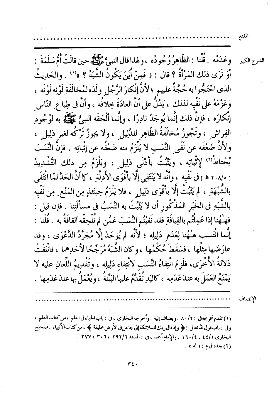 وعَدَمُه. قُلْنا: الظّاهِرُ وُجُودُه، ولهذا قال النبيُّ - صلى الله عليه وسلم - حين قالتْ أمُّ سَلَمَةَ: أوَ تَرَى ذلك المَرْأةُ؟ قال: «فَمِنْ أينَ يَكُونُ الشَّبَهُ؟» (¬1). والحَدِيثُ الذي احْتَجُّوا به حُجَّة عليهم؛ لأنَّ إنْكارَ الرَّجُلِ ولَدَه لمُخالفَةِ لَوْنِه لَوْنَه، وعَزْمَهُ على نَفْيِه لذلك، يَدُلُّ على أنَّ العادَةَ خِلافُه، وأنَّ في طِباعِ النّاسِ إنْكارَه، فإنَّ ذلك إنَّما يُوجَدُ نادِرًا، وإنَّما ألْحَقَه النبي - صلى الله عليه وسلم - به لوُجُودِ الفِراشِ، وتَجُوزُ مُخالفَةُ الظّاهِرِ للدَّلِيلِ، ولا يجوزُ تَرْكُه لغيرِ دَلِيل، ولأنَّ ضَعْفَه عن نَفْي النَّسَبِ لا يَلْزَمُ منه ضَعْفُه عن إثْباتِه. فإنَّ النَّسَبَ يُحْتاطُ (¬2) لإِثْباتِه، ويَثْبُتُ بأدْنَى دَلِيل، ويَلْزَمُ مِن ذلك التَّشْدِيدُ في نَفْيِه، وأنَّه لا يَنْتَفِي إلَّا بأقْوَى الأدِلَّةِ، كما أنَّ الحَدَّ لمّا انْتَفَى بالشبْهَةِ، لم يَثْبُتْ إلَّا بأقْوَى دَلِيل، فلا يَلْزَمُ حِينَئذٍ مِن المَنْعِ مِن نَفيِه بالشَّبَهِ في الخَبَرِ المَذْكُورِ أن لا يَثْبُتَ به النَّسَبُ في مسألَتِنا. فإن قيل: فهاهُنا إذا عَمِلْتُم بالقِيافَةِ فقد نَفيتُم النَّسَبَ عَمَّن لم تُلْحِقْه القافَةُ به. قُلْنا: إنَّما انْتَسب هاهُنا لِعَدَم دَلِيله؛ لأنَّه لم يُوجَدْ إلَّا مُجَرَّدُ الدَّعْوَى، وقد عارَضَها مِثلُها، فسَقَطَ حُكْمُها، وكان الشَّبَهُ مُرَجِّحًا لأحَدِهما، فانْتَفتْ دَلالةُ الأخْرَى، فلَزِمَ انْتِفاءُ النَّسَبِ لانْتِفاءِ دَلِيله، وتَقْدِيمُ اللِّعانِ عليه لا يَمْنَعُ العَمَلَ به عندَ عَدَمِه، كاليَدِ تُقَدَّمُ عليها البَيِّنةُ، ويُعْمَلُ بها عندَ عَدَمِها.