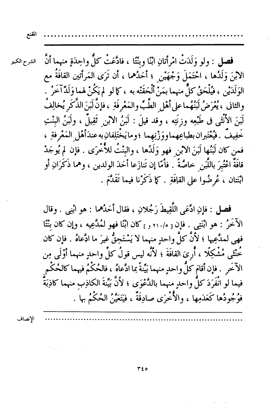 فصل: ولو وَلَدَتْ امْرأتانِ ابْنًا وبِنْتًا، فادَّعَتْ كل واحِدَةٍ منهما أنَّ الابنَ وَلَدُها، احْتَمَلَ وَجْهَينِ؛ أحَدُهما، أن تَرَى المَرأتين القافَة مع الوَلَدَين، فيُلْحَقُ كل منهما بمَنْ ألْحَقَتْه به، كما لو لم يَكُنْ لهما وَلَدٌ آخَرُ. والثاني، يُعْرَضُ لَبَنُهُما على أهْلِ الطِّبِّ والمَعْرِفَةِ، فإنَّ لَبَنَ الذَّكَرِ يُخالِفُ لَبَنَ الأنْثَى في طَبْعِه وزِنَتِه، وقد قيلَ: لَبَنُ الابنِ ثَقِيل، ولَبَنُ البِنْتِ خَفِيف. فيُعْتَبران بطباعِهما ووَزْنِهِما؛ وما يَخْتَلِفانِ به عندَ أهْلِ المَعْرِفةِ، فمن كان لَبَنُها لَبَنَ الابن فهو وَلَدُها، والبِنْتُ للأخْرى. فإن لم يُوجَدْ قافَةٌ اعْتُبِرَ باللَّبَنِ خاصَّة. فأمّا إن تَنازَعا أحَدَ الولدين، وهما ذَكَرَانِ أو ابْنَتان، عُرِضُوا على القافَةِ. كما ذَكَرْنا فيما تَقَدَّمَ.