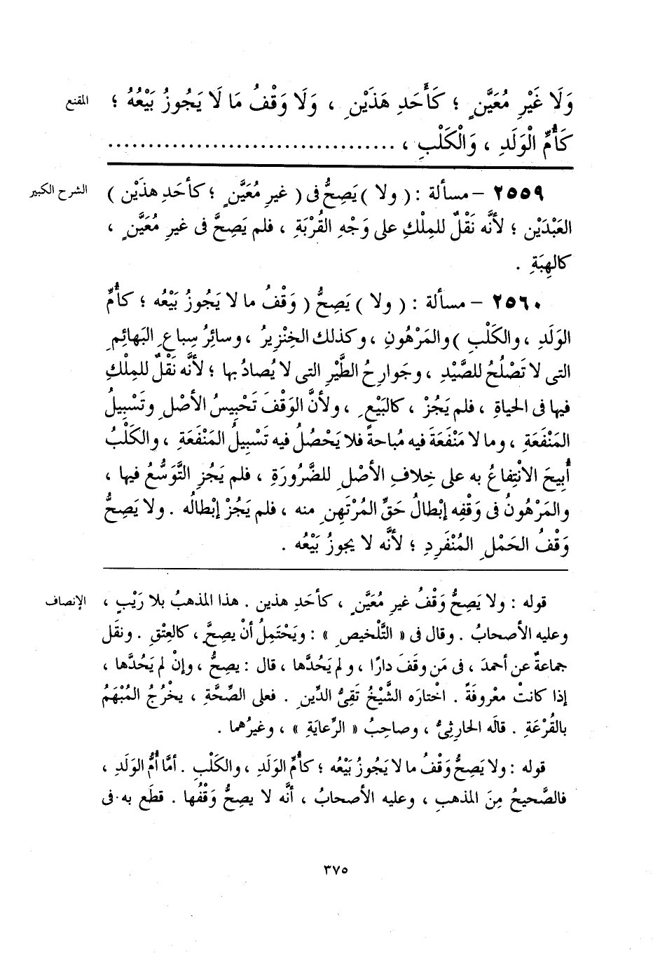 قوله: ولا يَصِح وَقْفُ ما لا يَجُوزُ بَيعُه؛ كأمِّ الوَلَدِ، والكَلْبِ. أمَّا أم الوَلَدِ، فالصَّحيحُ مِنَ المذهبِ، وعليه الأصحابُ، أنَّه لا يصِح وَقْفُها. قطَع به في