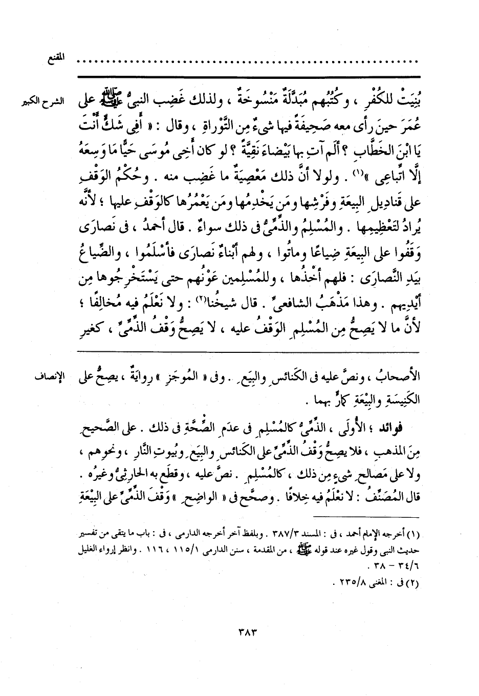 فوائد؛ الأولَى، الذمي كالمُسْلِمِ في عدَمِ الصِّحَّةِ في ذلك. على الصَّحيحِ مِنَ المذهبِ، فلا يصِح وَقْفُ الذمي على الكَنائسِ والبِيَعِ وبُيوتِ النَّارِ، ونحوهم، ولا على مَصالحِ شيءٍ مِن ذلك، كالمُسْلِمِ. نصَّ عليه، وقطَع به الحارِثِيُّ وغيرُه. قال المُصَنِّفُ: لا نعْلَمُ فيه خِلافًا. وصحَّح في «الواضِحِ» وَقْفَ الذمي على البِيعَةِ
