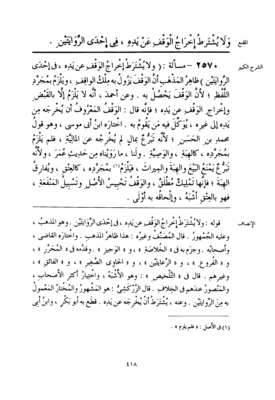 قوله: ولا يُشْتَرَطُ إخراجُ الوَقْفِ عن يَدِه، في إحْدَى الرِّوَايتَين. وهو المذهبُ، وعليه الجُمْهورُ. قال المُصنِّفُ وغيرُه: هذا ظاهرُ المذهبِ. واخْتارَه القاضي، وأصحابُه. وجزَم به في «الخُلاصَةِ»، و «الوَجيزِ». وقدمه في «المُحَرَّرِ»، و «الفُروعِ»، و «الرِّعايتَين»، و «الحاوي الصَّغِيرِ»، و «الفائقِ»، وغيرِهم. قال في «التلْخيصِ»: وهو الأشْبَهُ، واخْتِيارُ أكثرِ الأصحابِ، والمَنْصورُ عندَهم في الخِلافِ. قال الزرْكَشِي: هو المَشْهورُ والمُخْتارُ المَعْمولُ به مِنَ الرِّوايتين. وعنه، يُشْتَرَطُ أنْ يُخْرِجَه عن يَدِه. قطَع به أبو بَكْر، وابن أبِي