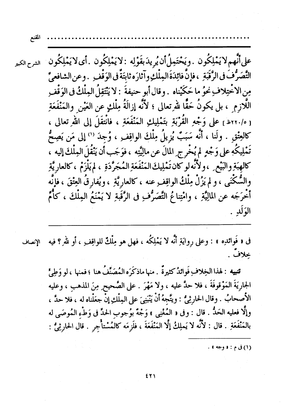 في «فَوائدِه»: وعلى رِوايَةِ أنَّه لا يَمْلِكُه، فهل هو مِلْكٌ للواقِفِ، أو للهِ؟ فيه خِلافٌ. تنبيه: لهذا الخِلافِ فَوائدُ كثيرةٌ. منها ما ذكَرَه المُصَنِّفُ هنا؛ فمنها، لو وَطِيء الجارِيَةَ المَوْقوفَةَ، فلا حدَّ عليه، ولا مَهْرَ. على الصَّحيحِ مِنَ المذهبِ، وعليه الأصحابُ. وقال الحارِثِي: ويتَّجِهُ أنْ يَنْبَنِيَ على المِلْكِ إنْ جعَلْناه له، فلا حدَّ، وإلا فعليه الحَدُّ. قال: وفي «المُغْنِي» وَجْه بوُجوبِ الحدِّ في وَطْءِ المُوصَى له بالمَنْفَعَةِ. قال: لأنَّه لا يَملِكُ إلَّا المَنْفَعَةَ، فلَزِمَه كالمُسْتأجِرِ. قال الحارِثِي: