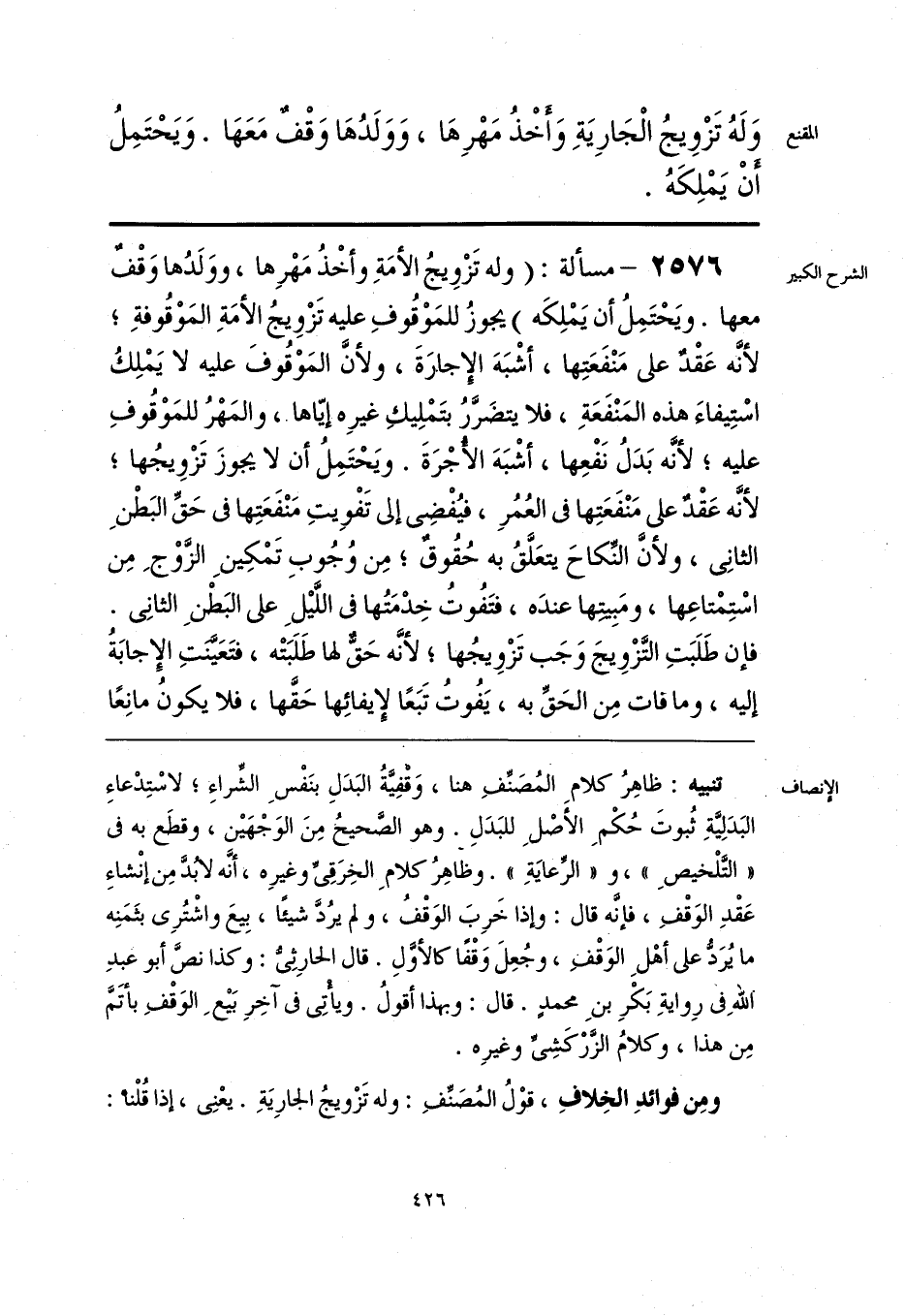 ومِن فوائدِ الخِلافِ، قوْلُ المُصَنِّفِ: وله تَزْويجُ الجارِيَةِ. يعْنِي، إذا قُلْنا:
