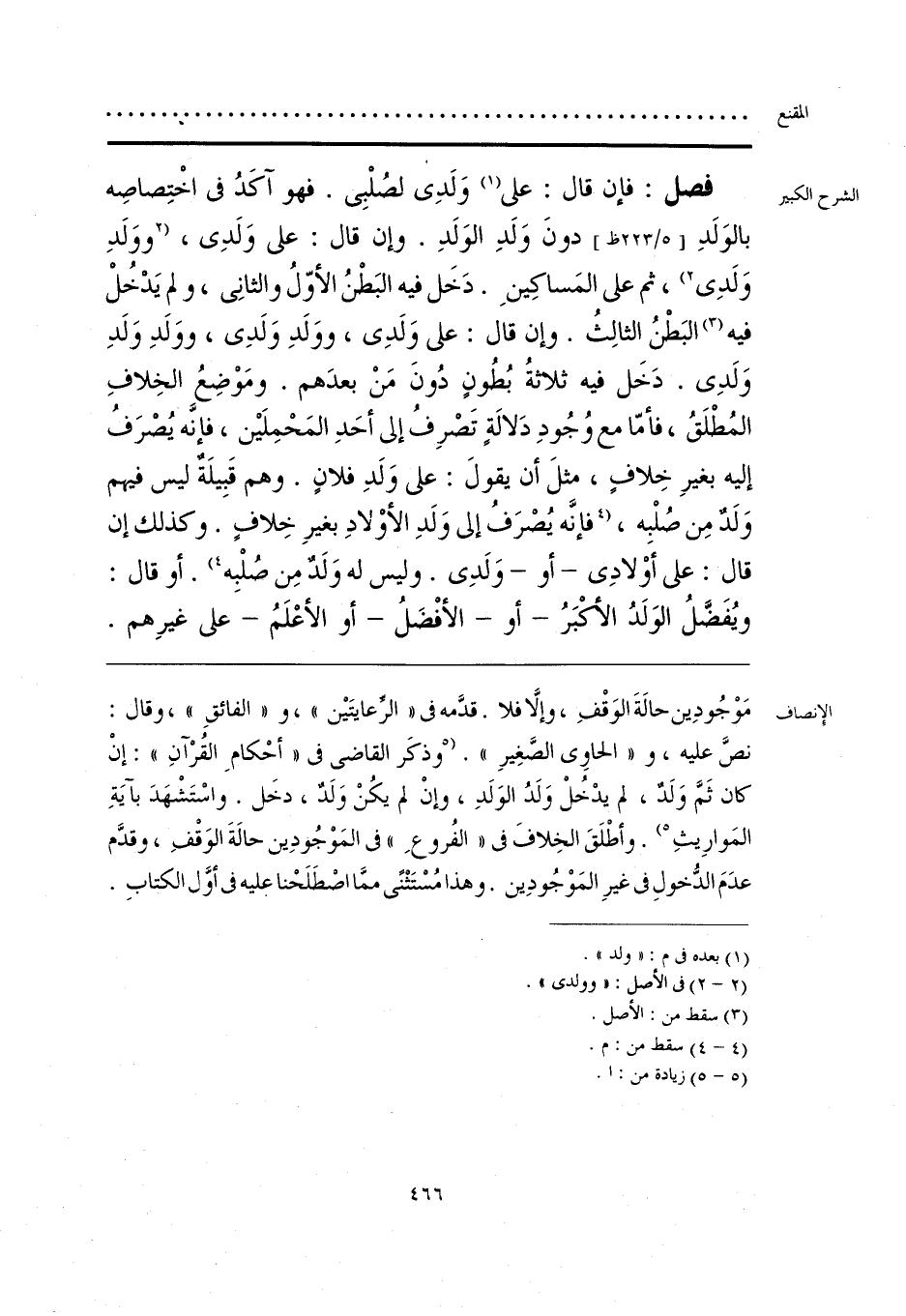 مَوْجُودِين حالةَ الوَقْفِ، وإلَّا فلا. قدَّمه في «الرَّعايتَين»، و «الفائقِ»، وقال: نصَّ عليه، و «الحاوي الصَّغِيرِ». [وذكَر القاضي في «أحْكامِ القُرْآنِ»: إنْ كان ثَمَّ وَلَدٌ، لم يدْخُلْ وَلَدُ الوَلَدِ، وإنْ لم يكُنْ وَلَدٌ، دخَل. واسْتَشْهَدَ بآيَةِ المَوارِيثِ] (¬1). وأطْلَقَ الخِلافَ في «الفُروعِ» في المَوْجُودِين حالةَ الوَقْفِ، وقدَّم عدَمَ الدُّخولِ في غيرِ المَوْجُودِين. وهذا مُسْتَثْنًى ممَّا اصْطَلَحْنا عليه في أوَّل الكتابِ.