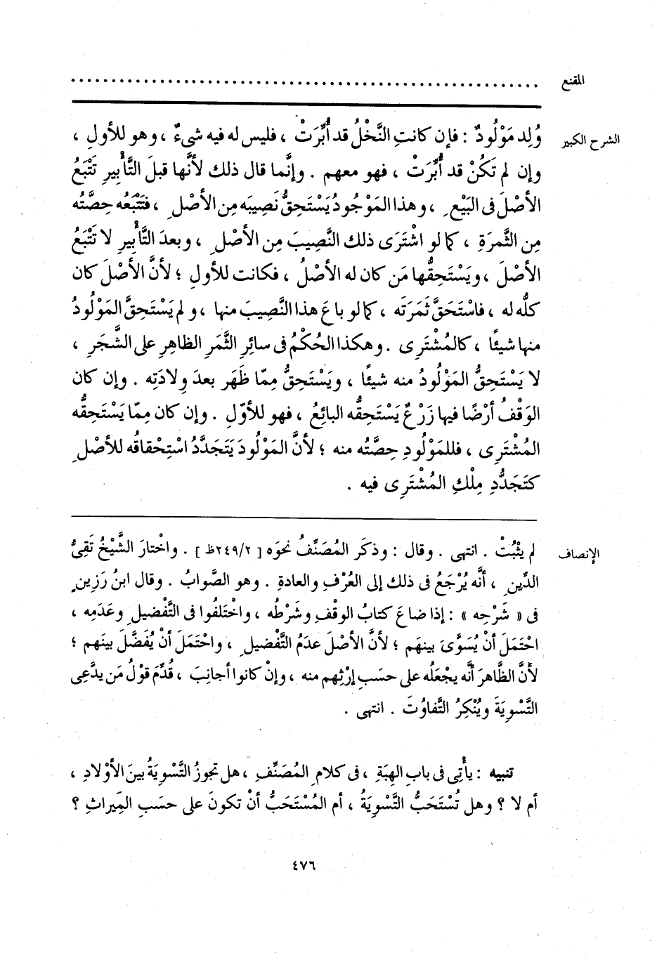 تنبيه: يأْتِي في بابِ الهِبَةِ، في كلامِ المُصَنِّفِ، هل تجوزُ التَّسْويَةُ بينَ الأوْلادِ، أم لا؟ وهل تُسْتَحَبُّ التَّسْويَةُ، أم المُسْتَحَبُّ أنْ تكونَ على حسَبِ المَيراثِ؟